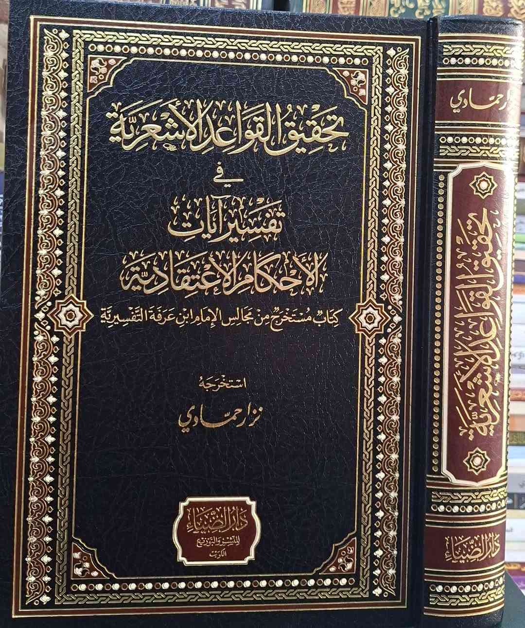 تحقيق القواعد الاشعرية في تفسير ايات الأحكام الاعتقادية كتاب مستخرج من مجالس الامام ابن عرفة التفسيرية وهو دراسة أکاديمية مستخرجة من تقييدات تلاميذ الإمام ابن عرفة التونسي (كالسلاوي، الأبي، والبسيلي) في مجالس تفسيرهم، ويركز على استنباط العقائد السنية الأشعرية من الآيات القرآنية، مرتباً على سور المصحف ويهدف إلى إرساء قواعد علم الكلام السني بأسلوب تفسيري تحليلي ، بعناية نزار حمادي طبعة دار الضياء شامو سعر 30 الف مكتبة عبدالله علي مراد كركوك خان القلعة للطلب والاستفسار الاتصال على رقم ***********