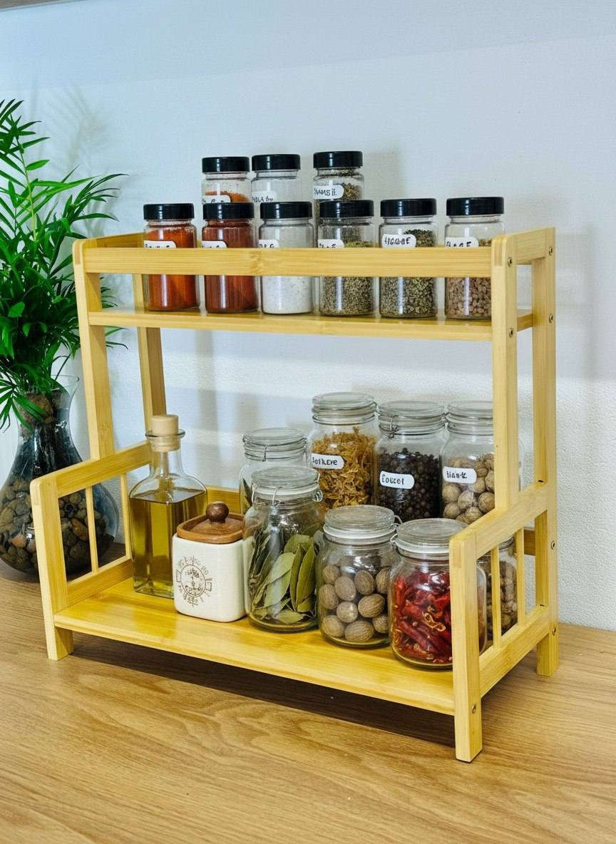 رف خشبي • طقم بهارات 10 قطع • توصيل العراق
