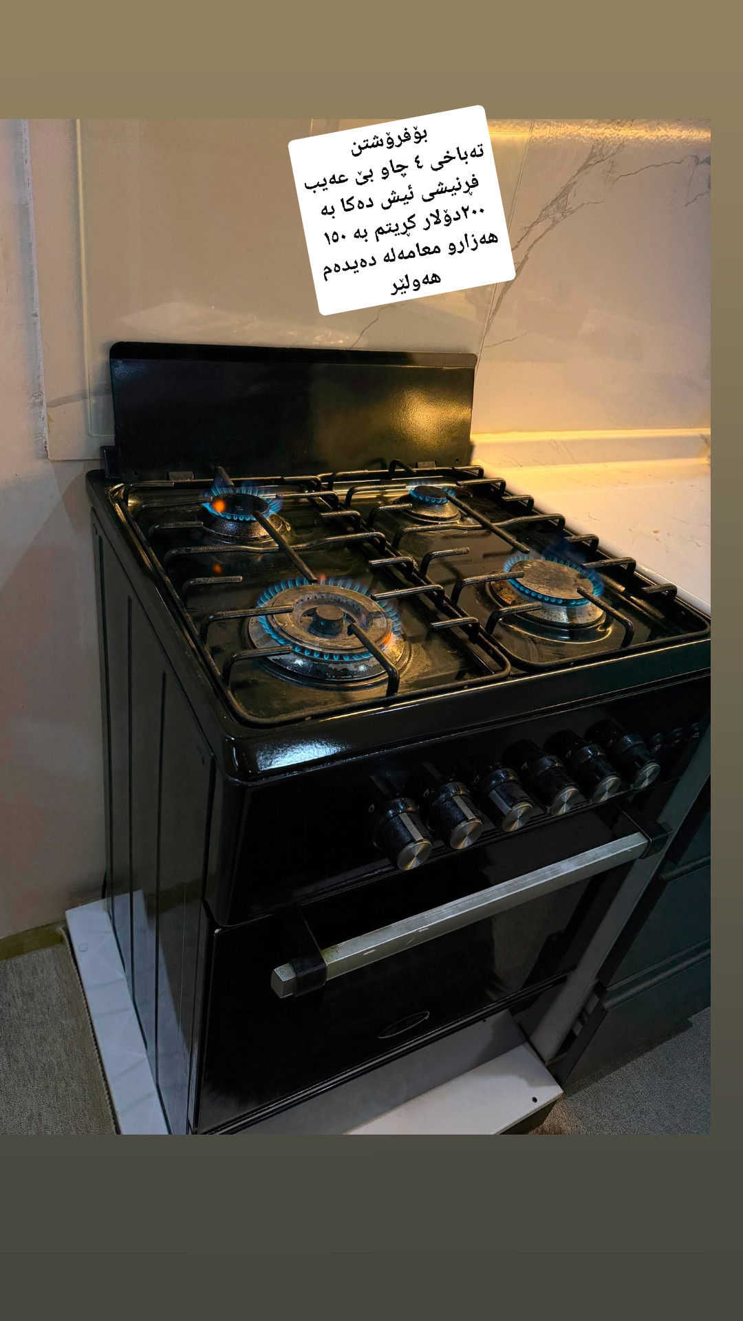 بۆفرۆشتن تەباخی ٤ چاو بێ عەیب فڕنیشی ئیش دەکا بە ٢٠٠دۆلار کڕیتم بە ١٥٠ هەزارو معامەلە دەیدەم هەولێر **إذا كنت صاحب هذا الإعلان وتريد حذفه لأي سبب، رجاءا أرسل رسالة إلى الدعم الفني**