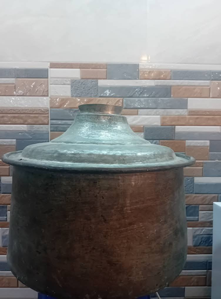 قدر طهي نحاس أحمر قديم ثلاثي مع الغطاء قطعة تراثية أصلية من الشغل اليدوي القديم، مصنوعة بطريقة الطرق التقليدية. القدر كبير الحجم ويتّسع لطبخ ذبيحة كاملة، مناسب للاستخدام أو للعرض التراثي. التفاصيل: الارتفاع مع الغطاء: حوالي 31 سم القطر: حوالي 40 سم الوزن: 4100 غرام المادة: نحاس أحمر خام الصناعة: شغل يدوي قديم (طرق) الحجم: كبير وثقيل قطعة نادرة وقوية تحكي تاريخ، مناسبة لهواة التراث والمطابخ التراثية. **إذا كنت صاحب هذا الإعلان وتريد حذفه لأي سبب، رجاءا أرسل رسالة إلى الدعم الفني**