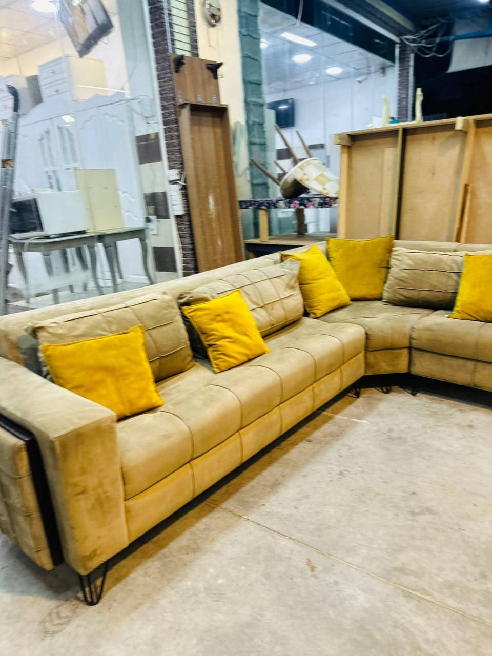 ديوان ٢٠ مقعد • ٢ كورنر • قماش كتان ناعم