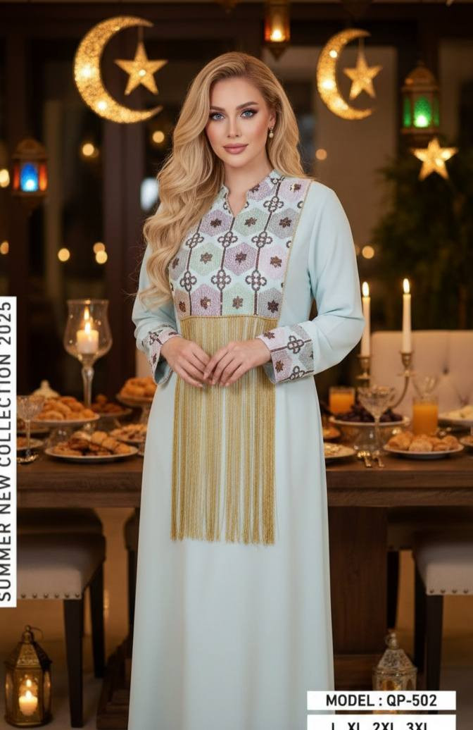 دشداشه نسائي • تطريز ستراس • قماش قطني مصري