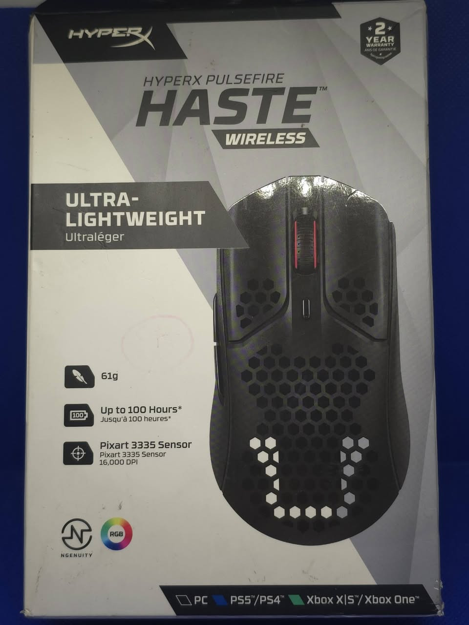 HyperX Pulsefire Haste Wireless فائق الخفة وزن 619 - سرعة وتحكم بدون تعب وایرلس بثبات عالي واستجابة ممتازة بطارية تدوم لحد 100 ساعة مستشعر 3335 Pixart بدقة تصل إلى 16000 DPI إضاءة RGB قابلة للتخصيص عبر برنامج NGENUITY متوافق مع PC - PS4/PS5 - Xbox One - Xbox Series XIS ضمان سنتين خيار مثالي للاعبين الFPS والEsports جديد وبكرتونة أصلية السعر 30 **إذا كنت صاحب هذا الإعلان وتريد حذفه لأي سبب، رجاءا أرسل رسالة إلى الدعم الفني**