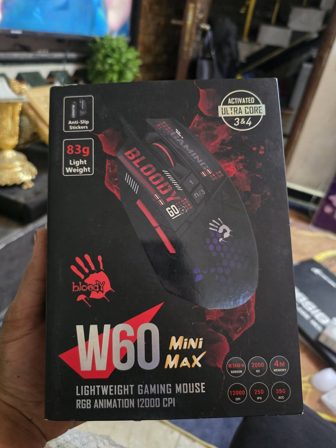 ماوس Bloody W60 Mini Max Gaming خفيف الوزن 839 - تحكم أسرع ودقة أعلى دقة تصل إلى 12000 CPI مع مستشعر قوي BC3332-A سرعة استجابة 2000 و 250 IPS للأداء الاحترافي ذاكرة داخلية 4MB الحفظ الإعدادات إضاءة RGB Animation شكلها فخم لثبات أفضل أثناء اللعب Anti-Slip Stickers مفعل - مثالي للألعاب التنافسية 4 & 3 Ultra Core خيار ممتاز لعشاق الألعاب و الFPS جديد وبكرتونة السعر 15 كبس جديد **إذا كنت صاحب هذا الإعلان وتريد حذفه لأي سبب، رجاءا أرسل رسالة إلى الدعم الفني**