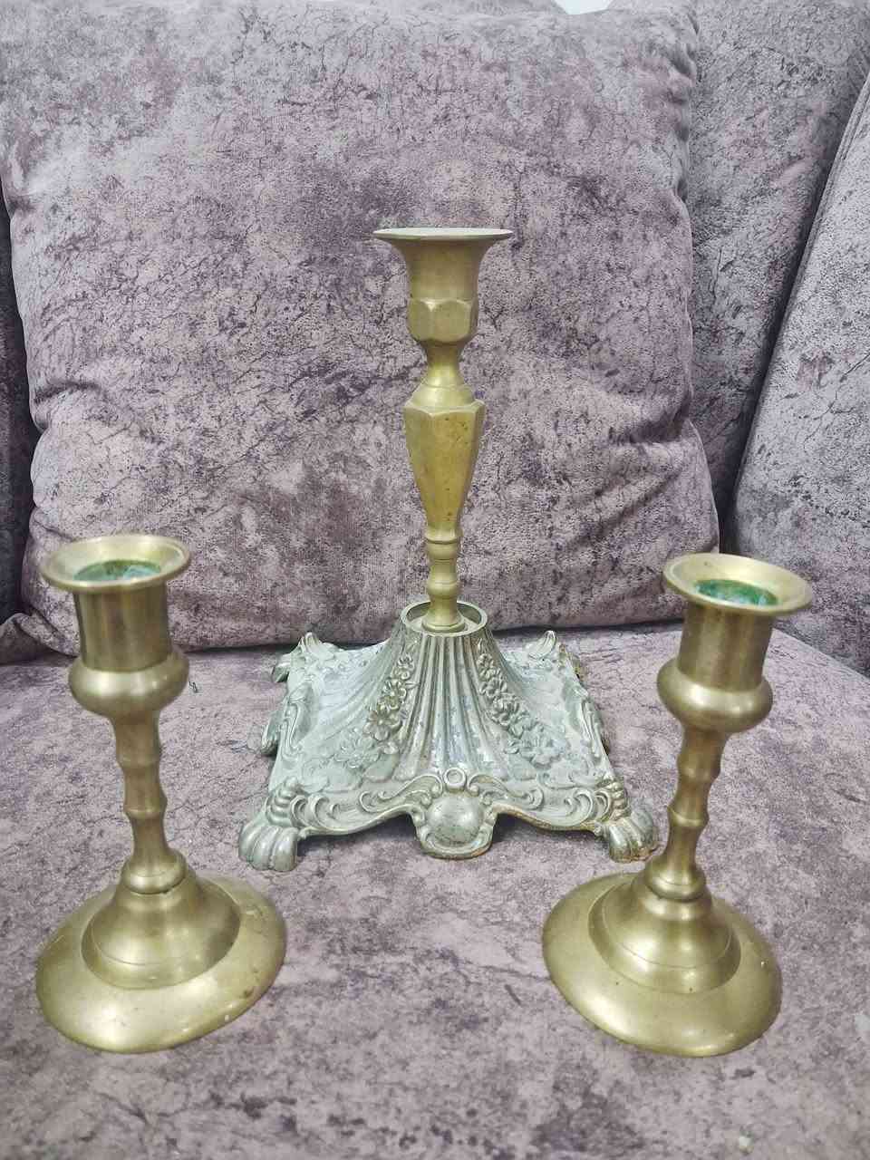 ✨ طقم شمعدانات نحاس قديم – قطعة فخمة لعشّاق الأنتيكا ✨ طقم مميز مكوّن من 3 قطع: 🔸 شمعدان كبير بقاعدة مزخرفة بتفاصيل كلاسيكية أنيقة 🔸 شمعدانين حجم أصغر بتصميم متناسق مصنوعين من النحاس الثقيل، تفاصيلهم راقية ولمسة الزمن معطيتهم طابع أنتيك فاخر 👑 مناسبين للديكور الكلاسيكي، المداخل، الطاولات أو جلسات الضيافة. 📩 متوفر للبيع بسعر مناسب – للاستفسار خاص. **إذا كنت صاحب هذا الإعلان وتريد حذفه لأي سبب، رجاءا أرسل رسالة إلى الدعم الفني**