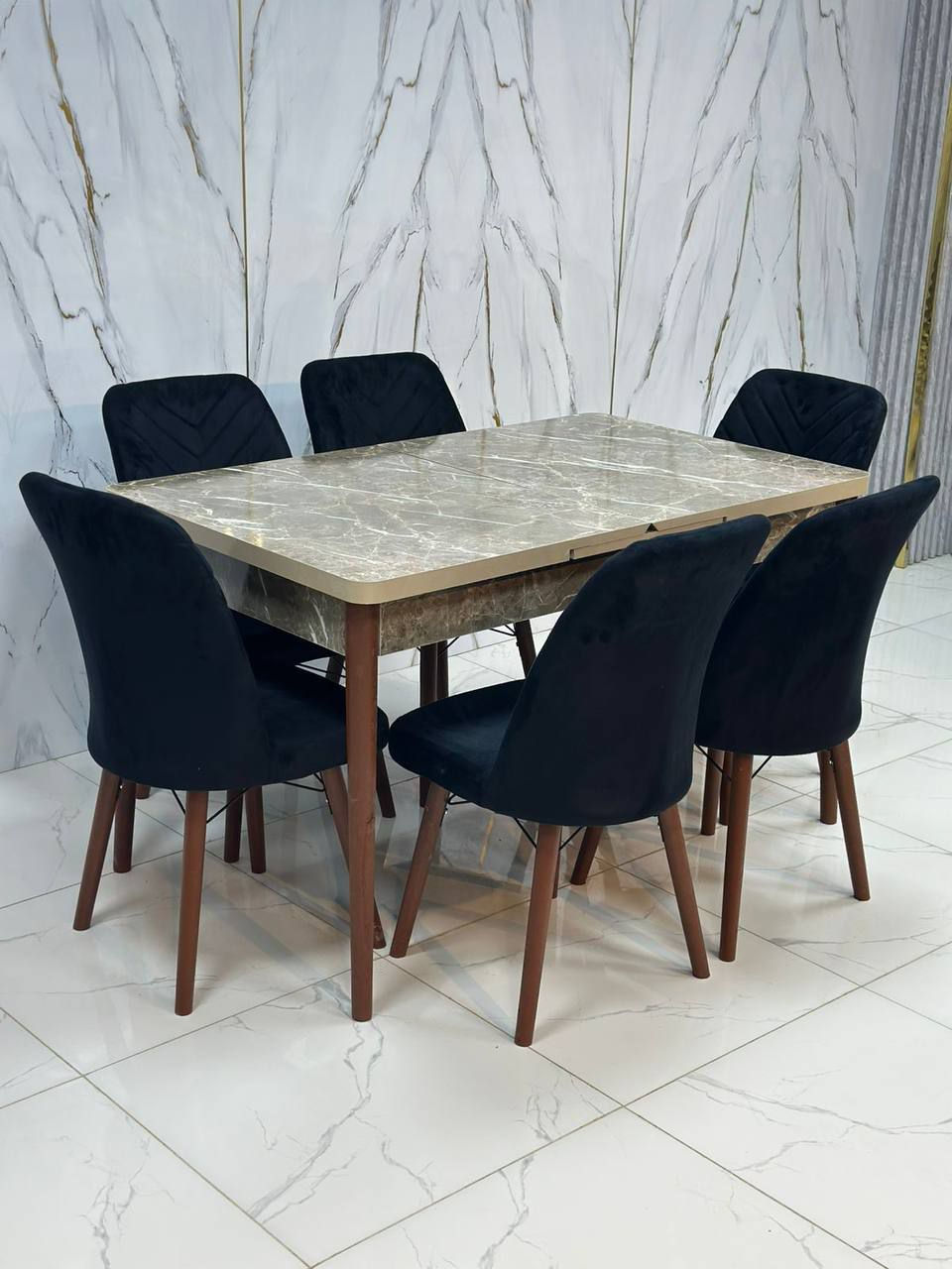 ميز طعام • مرمر بورسلين • ٦ و٤ كراسي