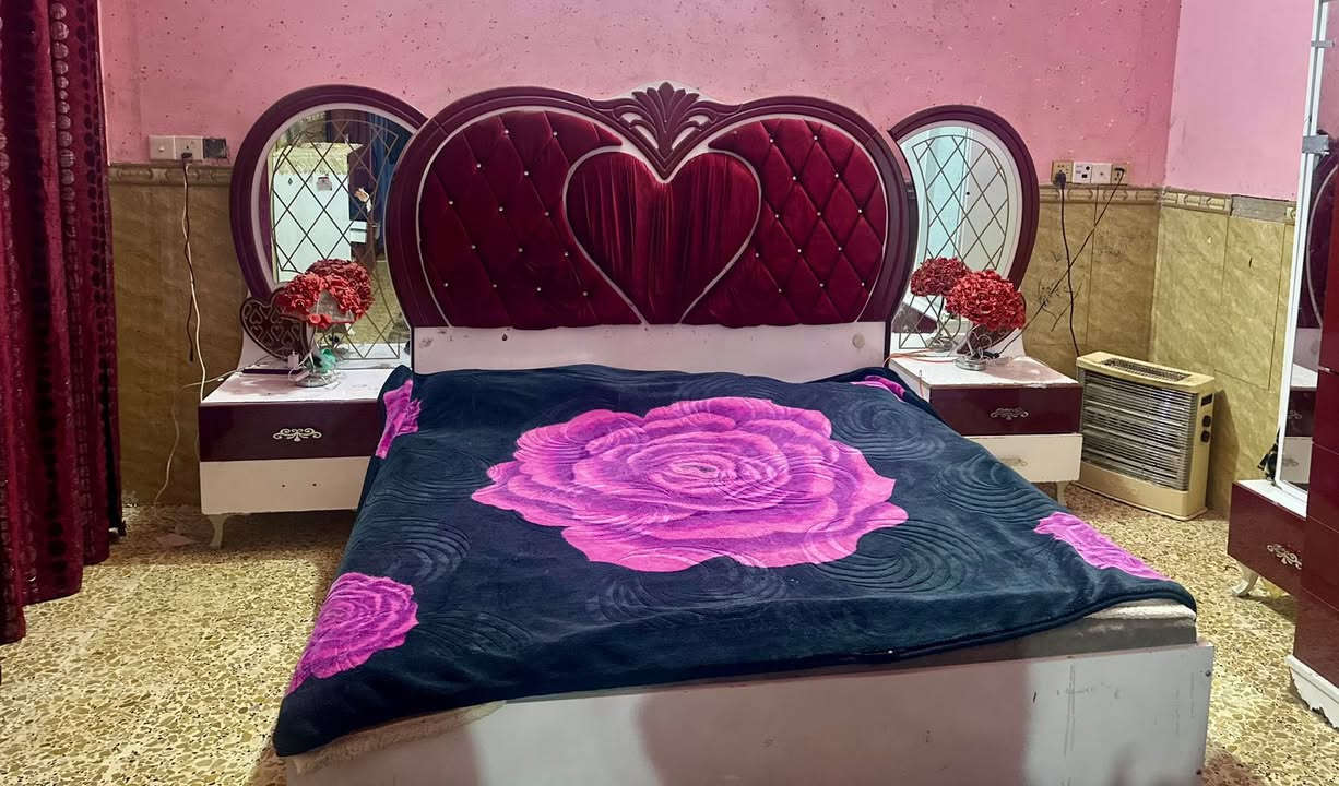سرير خشب عراقي • دوشك • ٢ كومودي