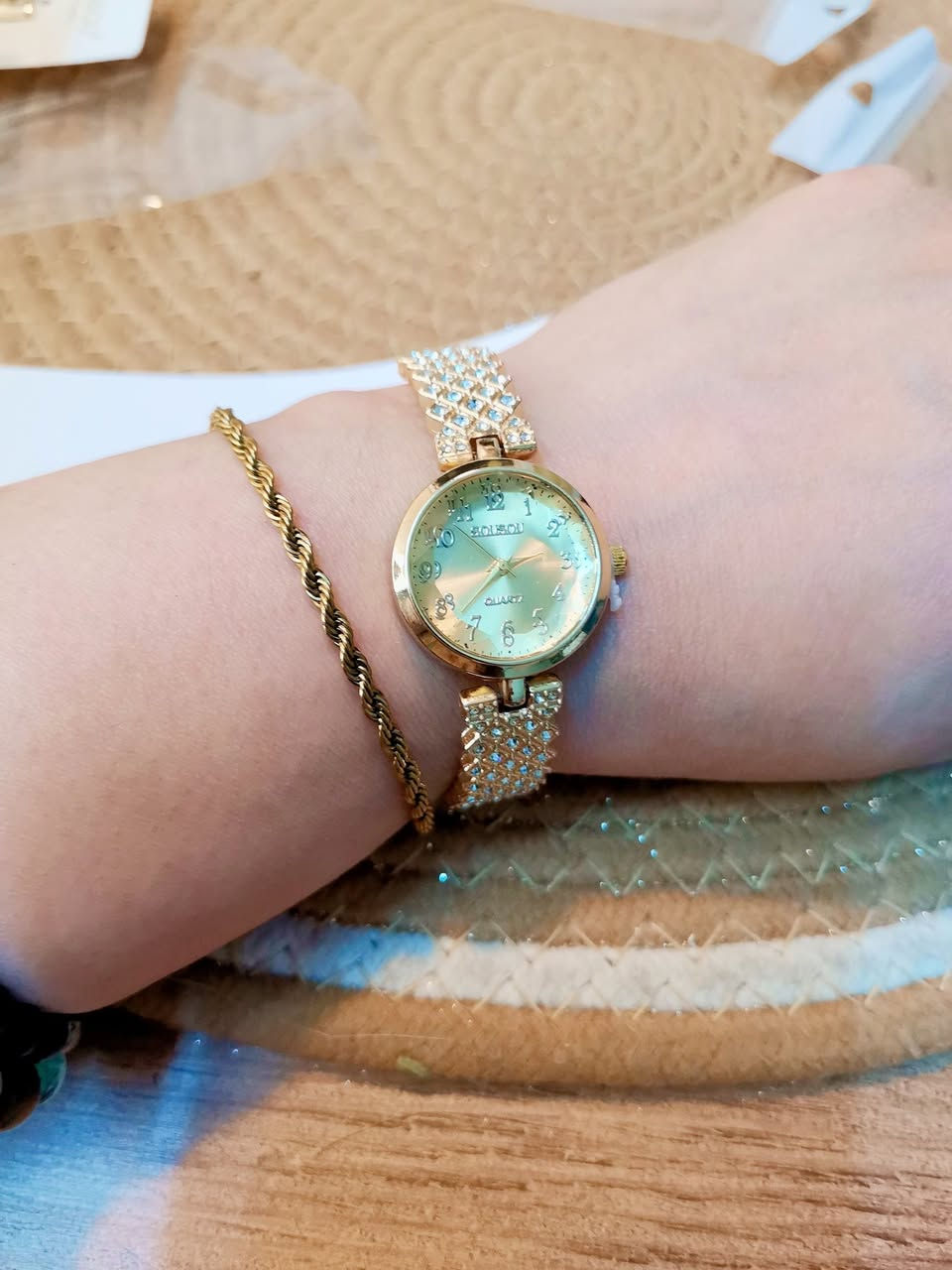 ساعة كوارتز • بسوار فولاذ • ذهبي فضي