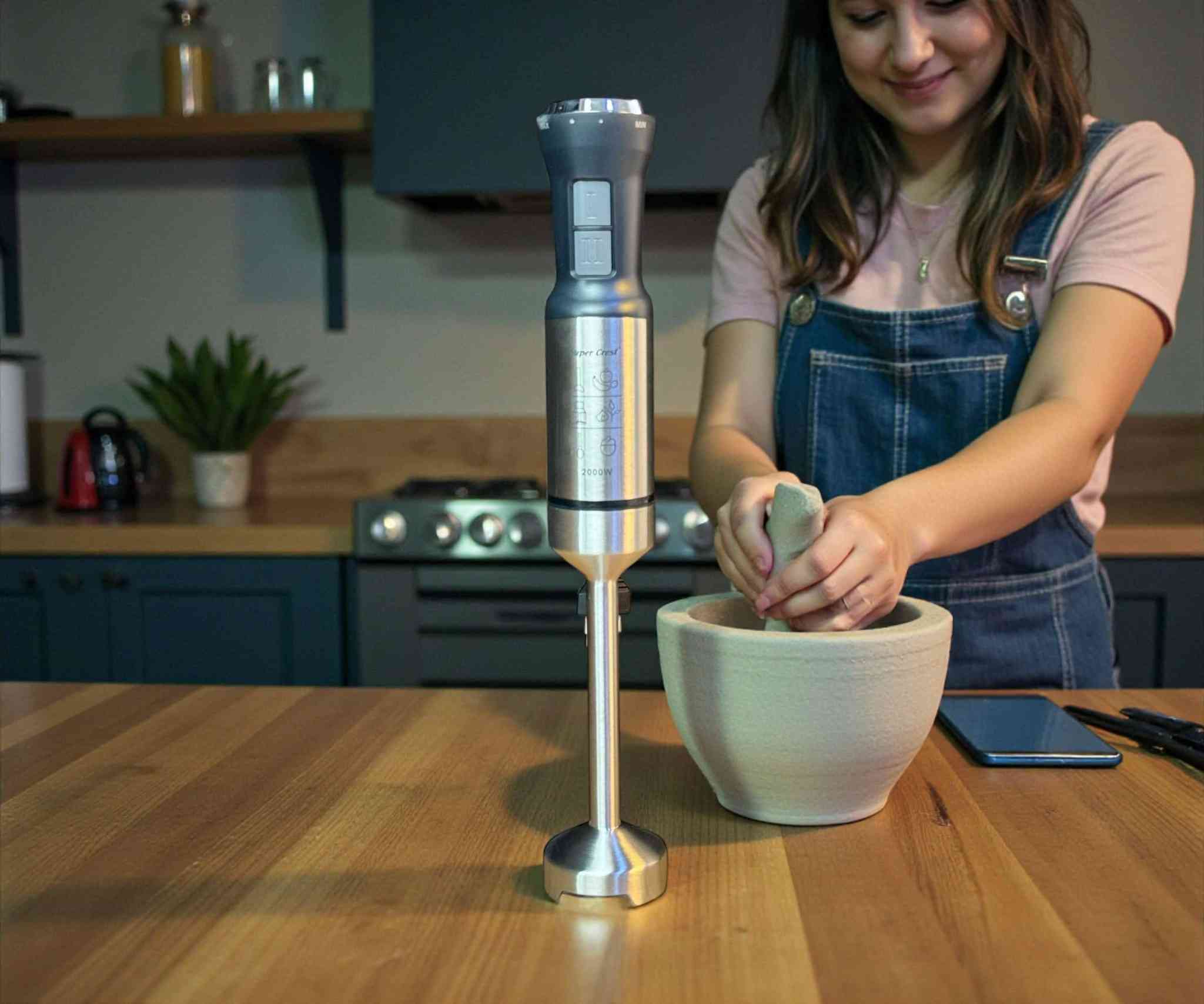 الاستخدامات خلط وتحضير الشوربات الساخنة والباردة مباشرة في القدر تحضير العصائر الطازجة والسموثي هرس البطاطا والخضروات تحضير أغذية الأطفال بسهولة خلط الصلصات، الكريمة، والمواد السائلة وشبه الصلبة مناسب للاستخدام المنزلي اليومي المميزات محرك قوي بقدرة 2000 واط لأداء سريع وفعّال 21 مستوى سرعة للتحكم الدقيق حسب نوع المكونات شفرتان متقاطعتان 4 شفرات من الستانلس ستيل بتصميم ماسي معكوس لخلط متجانس عصا خلط من الفولاذ المقاوم للصدأ (Stainless Steel Stick) زرين للتحكم بالسرعة (I II) لسهولة الاستخدام تصميم مريح لليد مع قبضة ثابتة يعمل على جهد 220–240 فولت | 5060 هرتز مناسب لخلط الشوربات، الصلصات، وأغذية الأطفال خامات متينة وجودة تصنيع عالية محتويات الصندوق خلاط يدوي Super Crest دليل الاستخدام علبة المنتج الأصلية قياس المنتج: طول 7 عرض 7 ارتفاع 40. طول السلك: 90 سم. الملاحظات لا يُغمر الجزء العلوي (المحرك) بالماء يُنصح بعدم التشغيل المتواصل لفترات طويلة للحفاظ على عمر المحرك للحجز *********** سعر 24