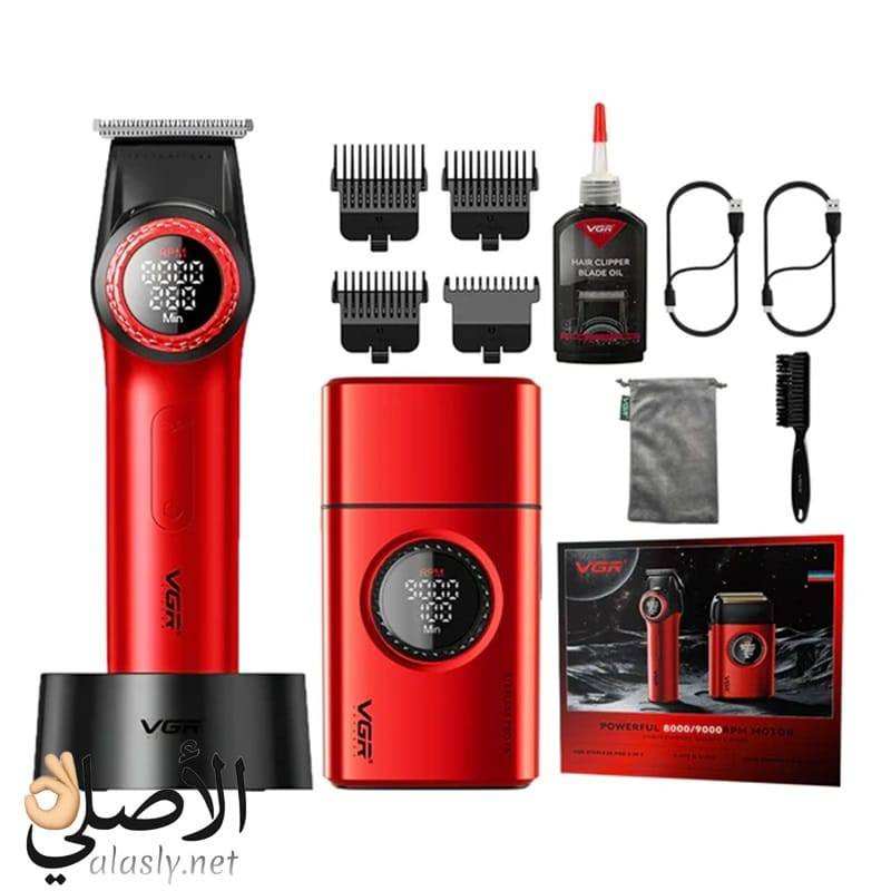 مجموعة حلاقة وتحديد احترافية للرجال من نوع VGR، وتحديداً الطرازين V-977 و V-377 معاً. تتضمن المجموعة ماكينة حلاقة دوارة (Foil Shaver) وماكينة تحديد (Trimmer). تعمل بمحرك قوي تصل سرعته إلى 9000 دورة في الدقيقة. تحتوي على شاشات LED لعرض السرعة ومستوى البطارية. تأتي مع شفرات مطلية بالكربون الشبيه بالألماس (DLC) لضمان حدة دقيقة. **إذا كنت صاحب هذا الإعلان وتريد حذفه لأي سبب، رجاءا أرسل رسالة إلى الدعم الفني**