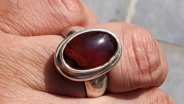 خاتم جزع يماني • عين حمره • فضة ثقيله