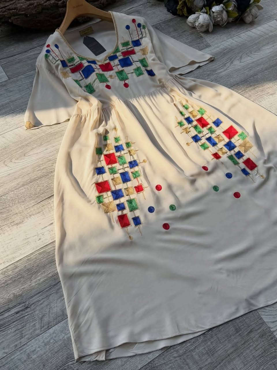 دشداشة نسائي • خامة زبدة • فري سايز 100 كيلو
