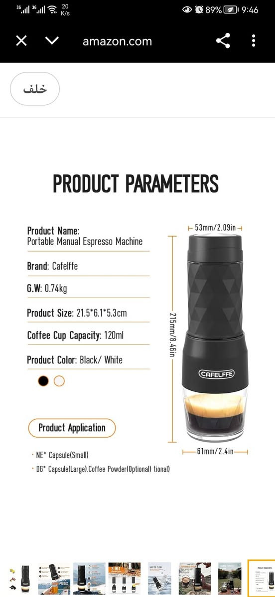 ماكينة اسبريسو محمولة • ١٥ بار • كبسولات وبن مطحون