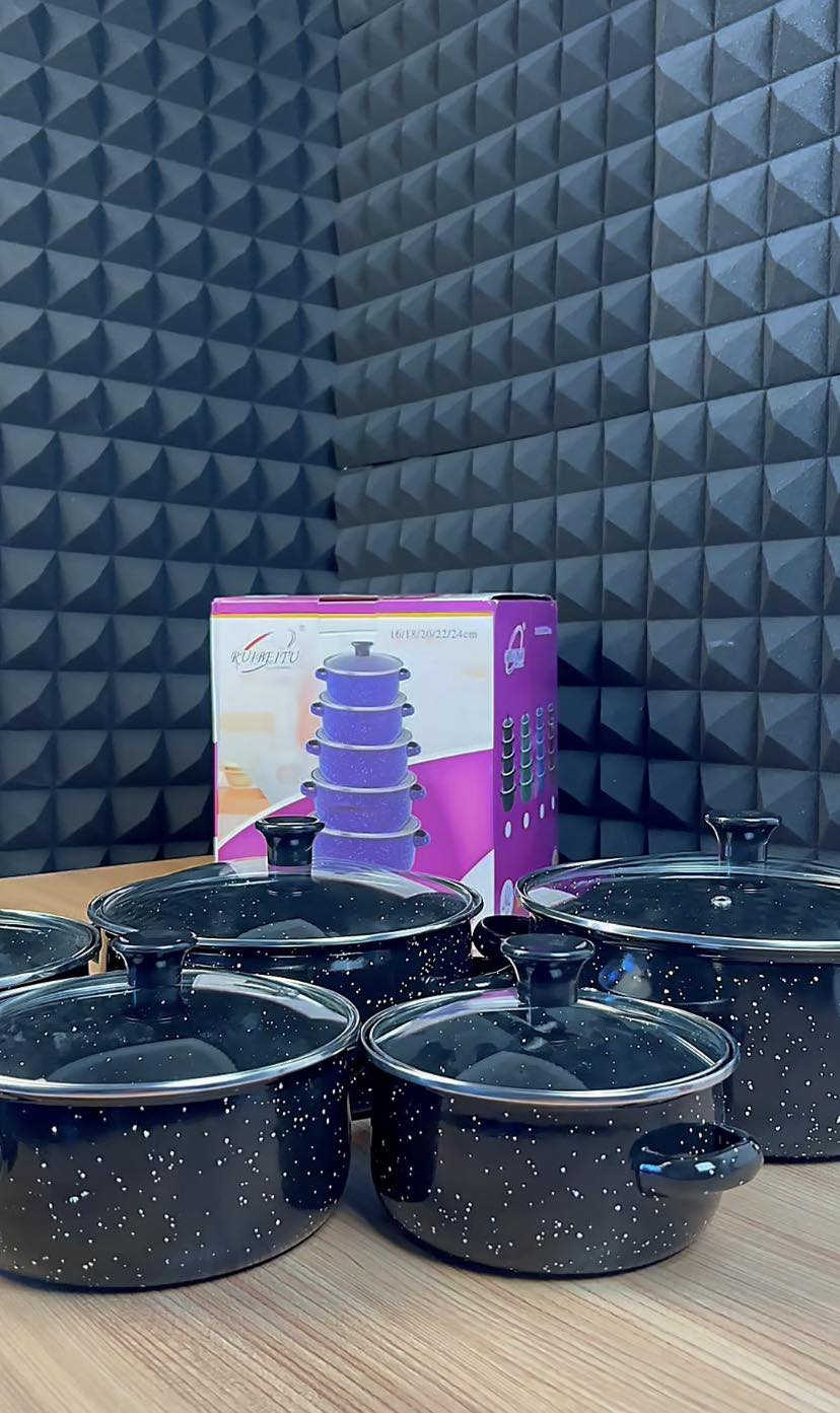 طقم قدور مينا • 5 قطع • أغطية زجاجية