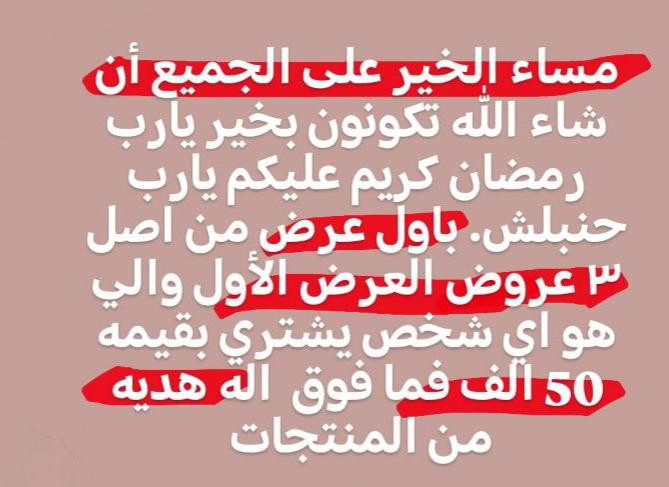 شاركو بالعرض قبل نفاذ الكمية **إذا كنت صاحب هذا الإعلان وتريد حذفه لأي سبب، رجاءا أرسل رسالة إلى الدعم الفني**