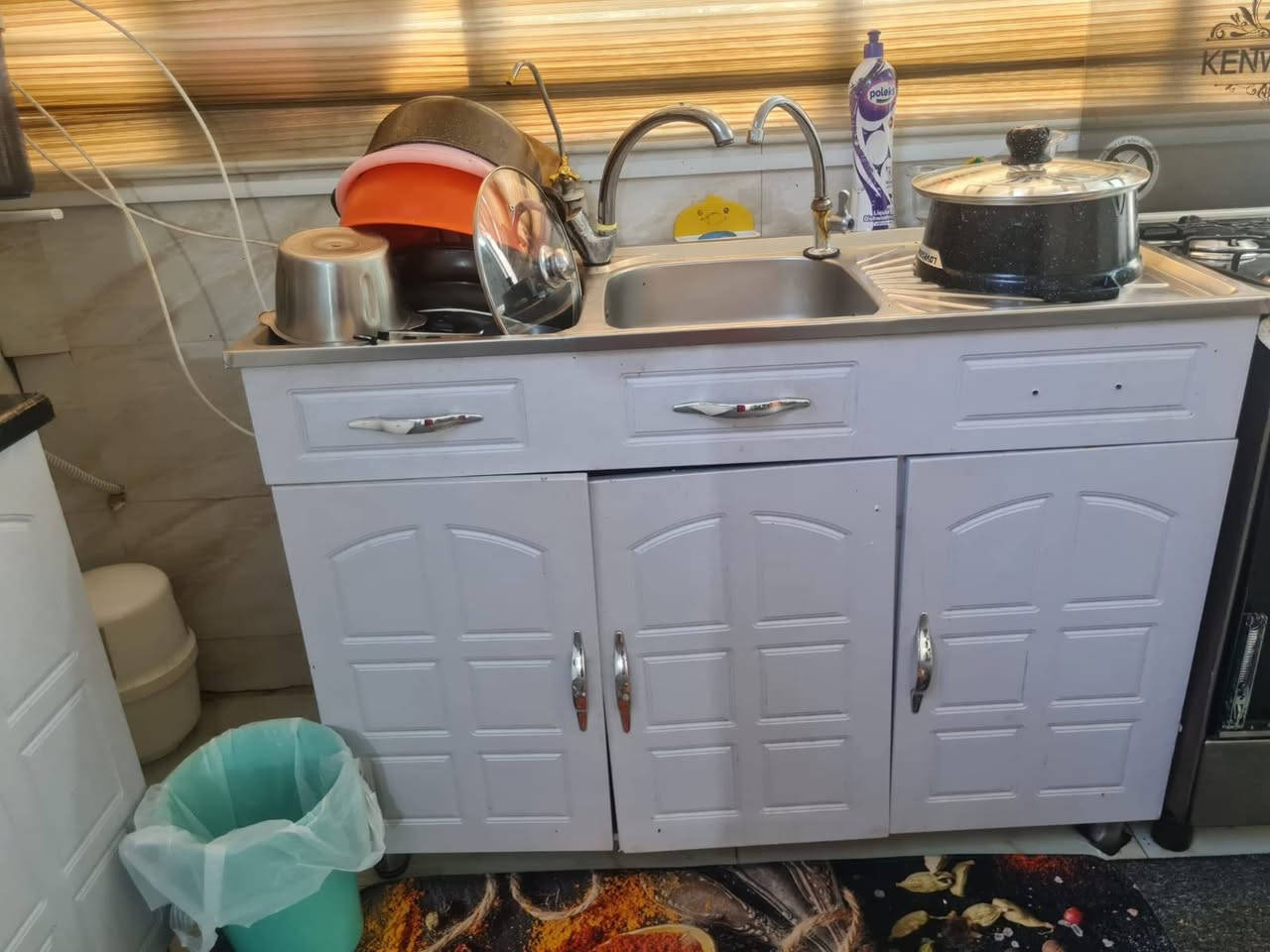كاونتر خشب MDF • متر ونص • سنك مرمر ١٫٢٠م