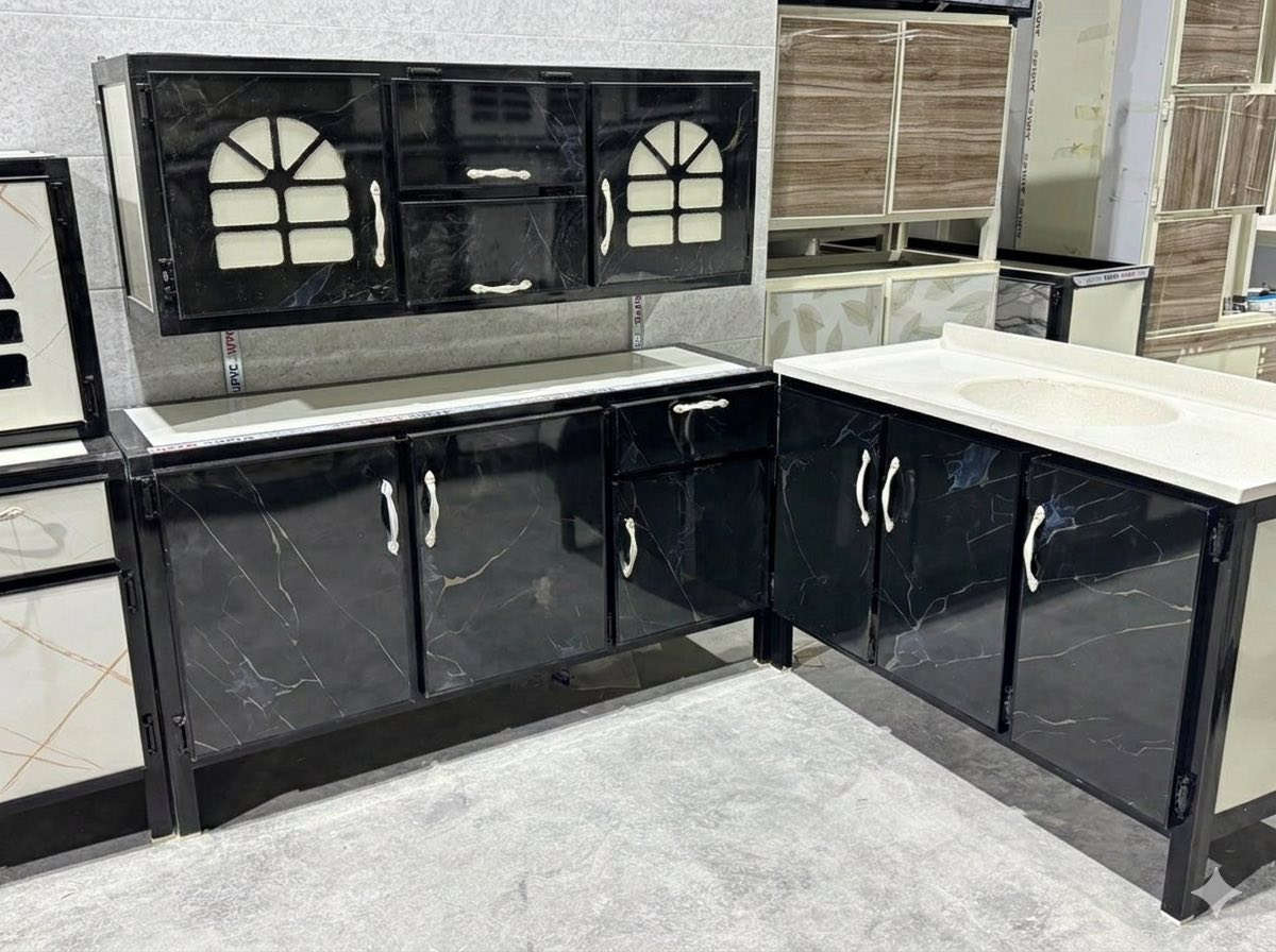 كاونتر أرضي 1.5م • سنك 1.2م مرمر صناعي • توصيل بغداد مجاني