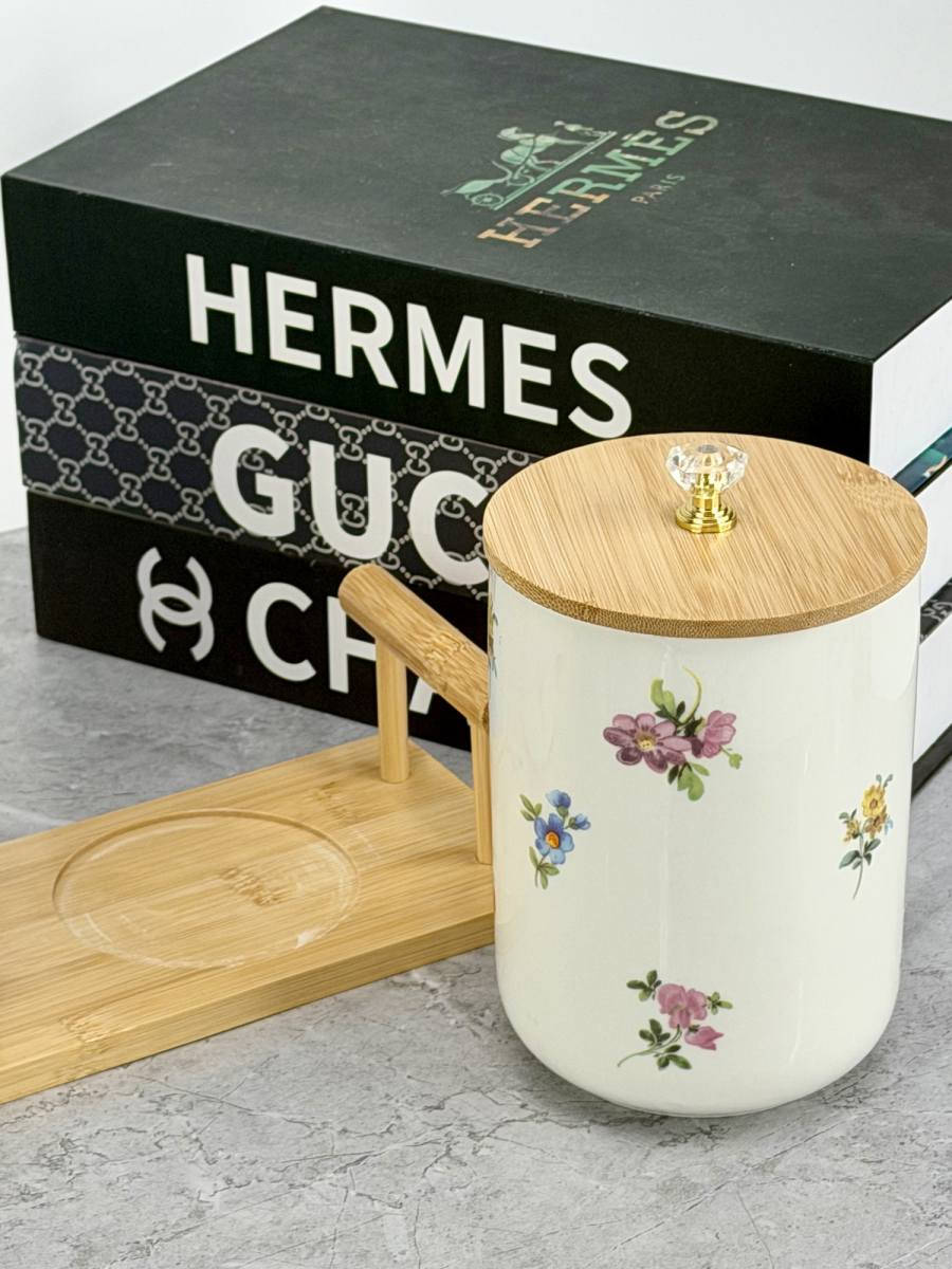 سيت قدور ثلاثي • مينا نقش ورد • أغطية زجاج حراري