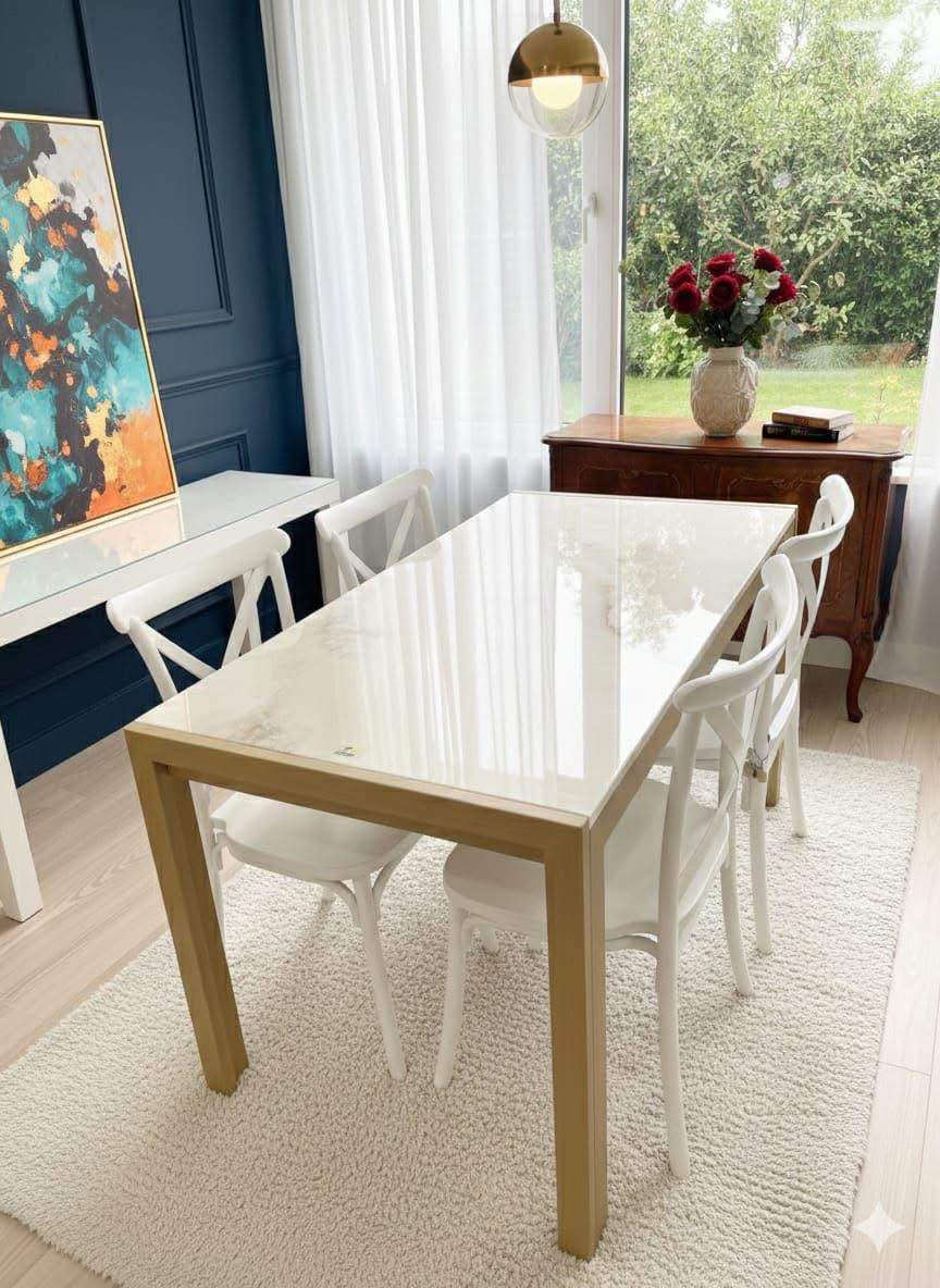 طاولة طعام • مرمر بورسلين • ٤ كراسي
