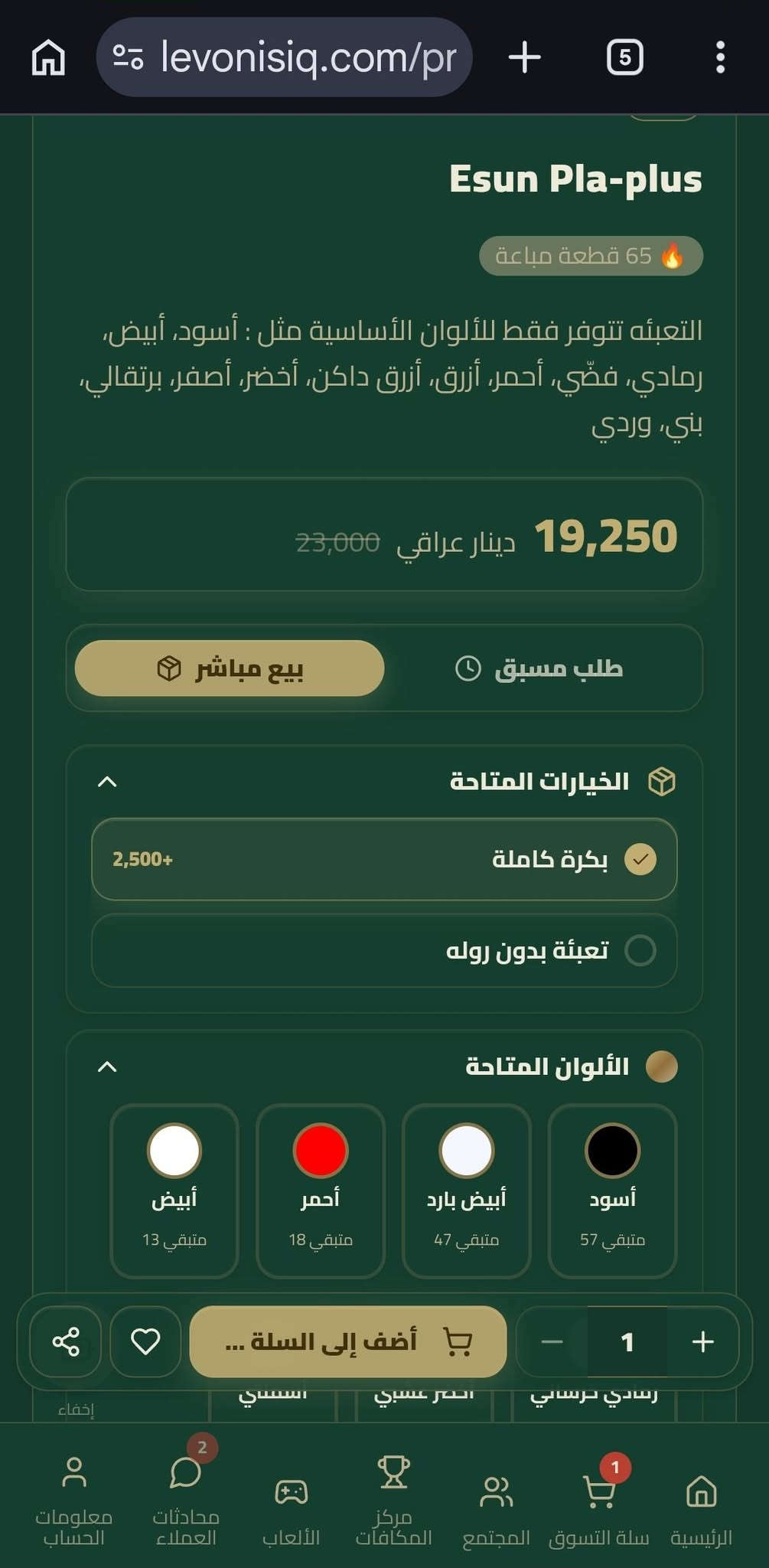 توفر فلمنت بيع مباشر في موقعنا levonisiq.com Esun pla + الكميه محدوده **إذا كنت صاحب هذا الإعلان وتريد حذفه لأي سبب، رجاءا أرسل رسالة إلى الدعم الفني**