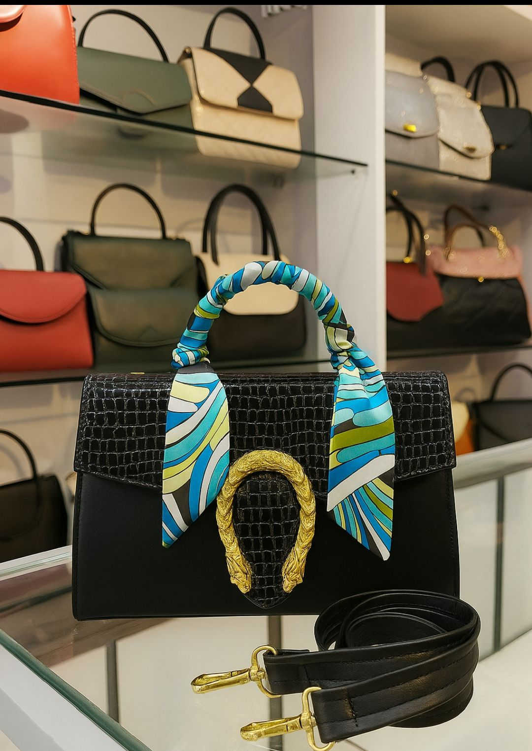 جنطة جلد • نقش تمساح • الديوانية الجلبية