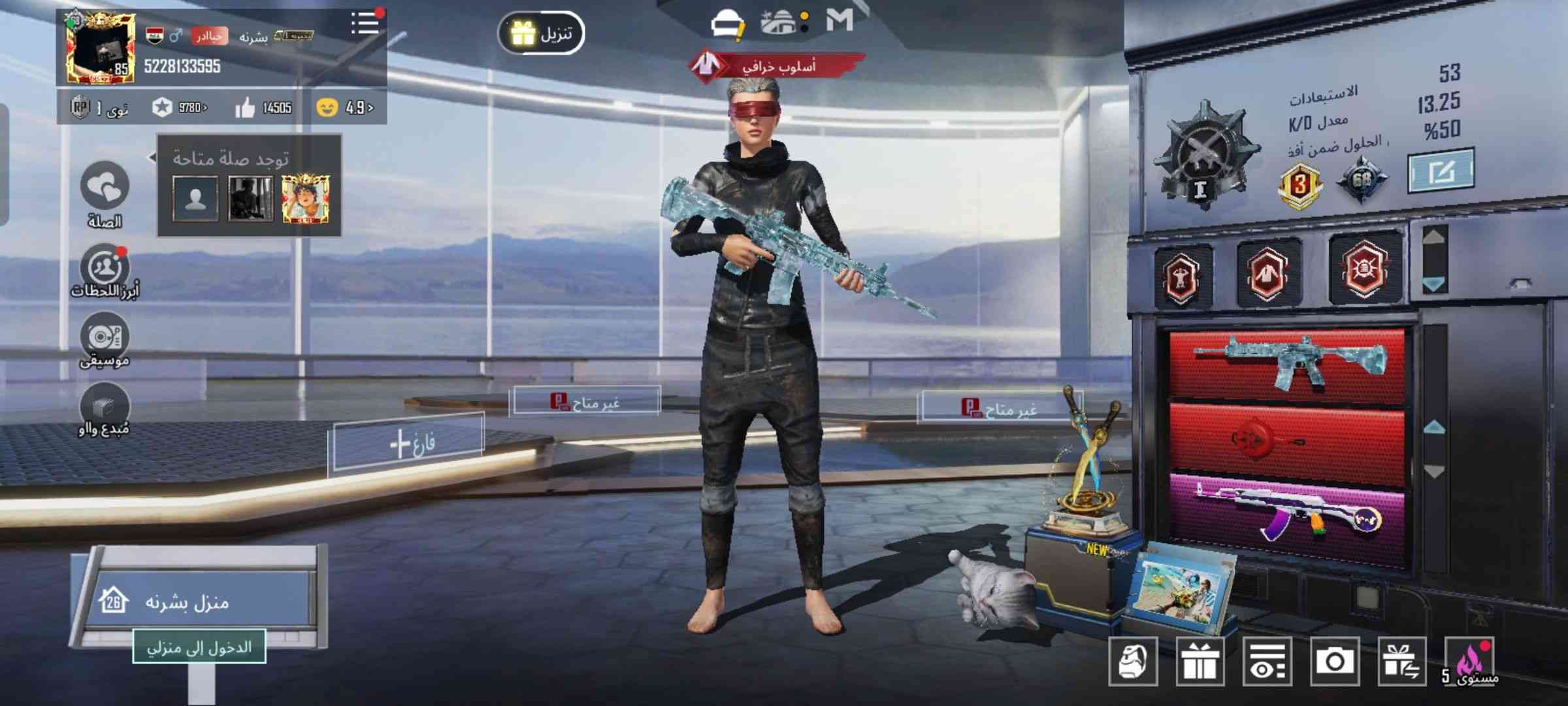 سلام عليكم حساب ببجي للبيع مرتب وكله نوادر لفل مجموع 68 مكان نجف وجه لوجه ربط كله متاح سعر قيم واخذ