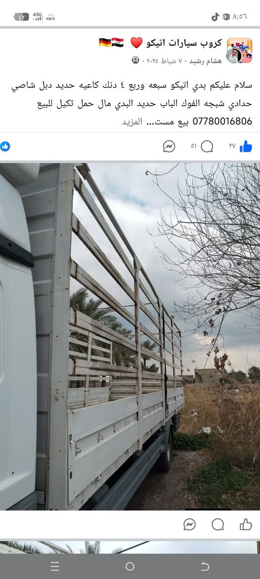 سلام عليكم بدي اتيكو سبعه وربع ٤ دنك كاعيه حديد دبل شاصي حدادي شبجه الفوك الباب حديد البدي مال حمل ثكيل للبيع بيع مستعجل ولمو شراي لايتصل تحياتي لكم *********** وثاني واتساب ***********