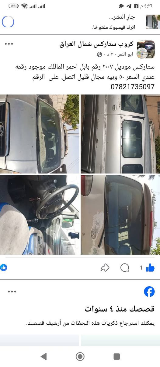 السلام عليكم سياره ستاركس موديل ٢٠٠٧ رقم بابل احمر الماللك موجود عندي السعر ٥٠ وبيه مجال اتصل على الرقم ***********