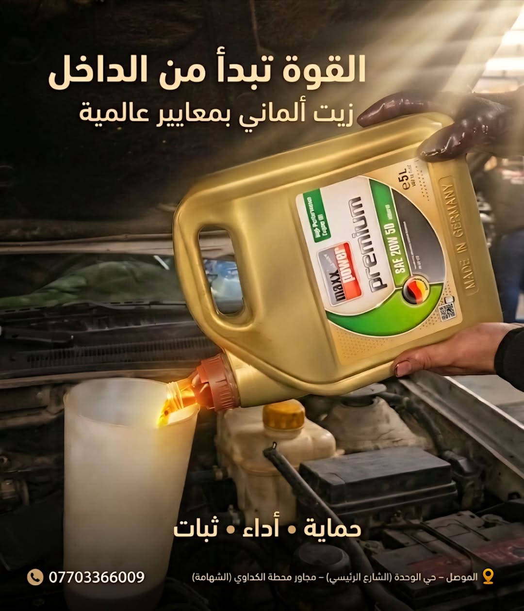 #Maxx_Power Premium 🚗 القوة الحقيقية تبدأ من الداخل! لأن محرك سيارتك هو قلبها النابض، امنحه العناية التي يستحقها مع زيت Maxx Power Premium (SAE 20W-50). وفرنا لك التكنولوجيا الألمانية المصممة بأعلى المعايير العالمية، لتضمن لسيارتك أداءً ينطلق بك بثقة في كل رحلة. ✅️ لماذا تختار زيت Maxx Power؟ 🛡️ حماية فائقة: يقلل الاحتكاك ويحمي أجزاء المحرك من التآكل حتى في أصعب ظروف القيادة. 🚀 أداء استثنائي: يعزز من كفاءة المحرك ليعمل بطاقته القصوى ويمنحك استجابة أسرع. ⚙️ ثبات لا مثيل له: تركيبة متطورة تقاوم الحرارة العالية وتضمن لك عمراً أطول للمحرك. لا تساوم على جودة محركك.. اختر الصناعة الألمانية المتينة! 🇩🇪 📍 الوكيل الحصري في محافظة نينوى: المكتب الهندسي للسيارات. 🎁 خدمات مجانية للزبائن الكرام: ⚡️فحص شامل للسوائل والفلاتر (هواء وتبريد). ⚡️تعبئة ماء الماسحات ونيتروجين للإطارات. 📞 للأستفسار: *********** ✅️مراسلتنا عبر واتساب. https://wa.me/9647703366009 📌موقعنا على خرائط كوكل 👇👇 https://maps.app.goo.gl/g7vk3hwaN9mi91q49?g_st=com.google.maps.preview.copy 📩صفحتنا على الانستكرام 👇👇 https://www.instagram.com/eng_cars24?igsh=Y2JoNDVtMHgzZm1m&utm_source=qrhttps://t.me/EOC_CARS 📍 موقعنا: الموصل - حي الوحدة (الشارع الرئيسي) - مجاور محطة الكداوي (الشهامة). #الموصل #نينوى #حي_الوحدة #سيارات_الموصل #صيانة_سيارات #المكتب_الهندسي_للسيارات #تبديل_زيت #فلاتر_اصلية #دهن_محرك #ميكانيك #تنظيف_نوزلات #حجر_البيئة #Denckermann #Bluechem #اهل_الموصل #سيارات_العراق #خدمات_سيارات #المركز_الافضل_لصيانة_سيارتك_في_الموصل #EOC #بولش #عناية_بالسيارات #تلميع #سيارات #EGMA_Battery #بطاريات_اكما #سيارات #بطاريات_سيارات #جملة #ورش_صيانة