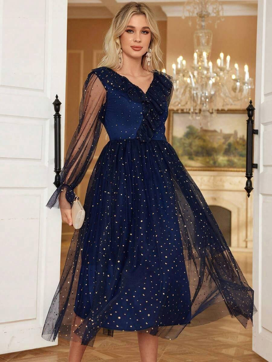 فستان ميدي • أكمام شيفون • ورود رقيقة