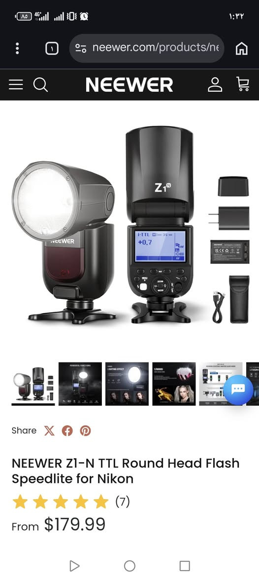 فلاش تصوير لكامرات النيكون من شركة neewer جديد كامل ملحقات نفس الصورة بالضبط السعر 75 الف **إذا كنت صاحب هذا الإعلان وتريد حذفه لأي سبب، رجاءا أرسل رسالة إلى الدعم الفني**