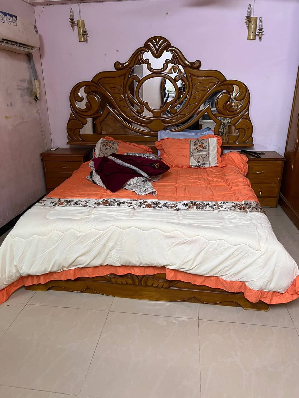 غرفة نوم • سرير خشبي