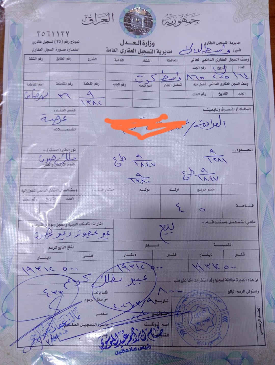 قطعه ارض للبيع مساحه ٤٠٥ متر موقع ركن تطل على شارع ٢٠ توزيع وزاره العدل مقاطعه نهر ضامن ***********