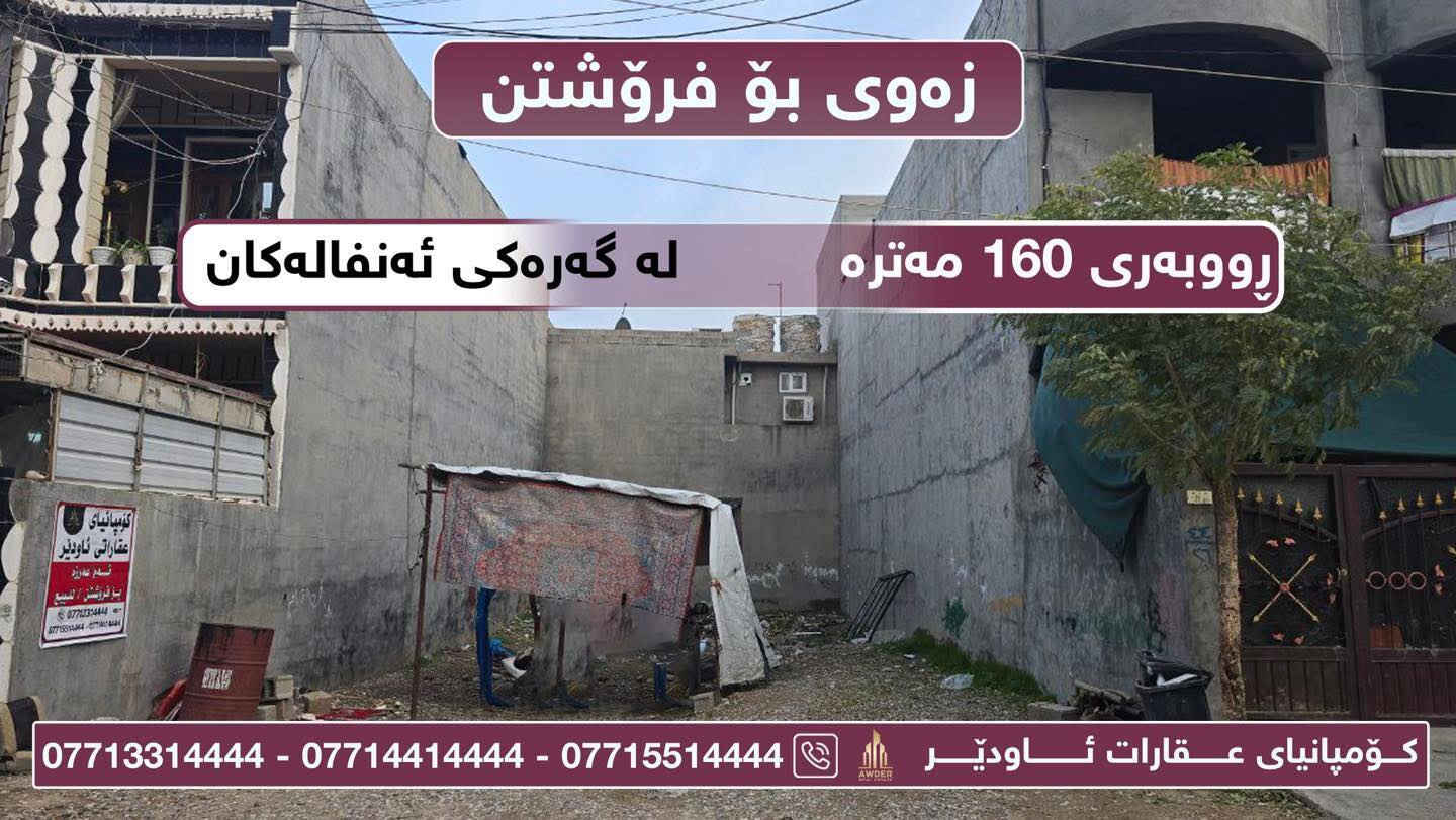 ♦️بەرژەوەندی تۆ قازانجی ئێمەیە ♦️ ✅ #زەوی لەگەڕەکی ئەنفالەکان بــــۆ #فــرۆشتن. ✅ دەکەوێتە نزیک دووسایدی ئەنفالەکان. ✅ ڕووبـــــەری ئەم زەویە ( 160 ) مەترە. ✅ ڕووی لە خۆرئاوایە. ✅ بەردەمی چۆڵە. ✅ تــــاپۆی ھــــەیە. 🔻 نزیکی ھەموو خزمەت گوزاریەکانە. 🔻 بۆ زانینی نرخ لە کۆمێنت داوای بکە ڕاستەوخۆ بەنامە بۆت دێت. 🔻بۆ زانیاری زياتر سەردانی ئۆفیسی عقاراتی ئاودێر بکەن 🔻ياخود پەیوەندی بکەن بە ژ.مۆبایل *********** *********** *********** *********** *********** ناونیشان ئۆفیسی سەرەکی عقاراتی ئاودێر : کەلار_شەهیدان_بەرامبەر ساحەی سێیەم. لقی دووەمی کۆمپانیای عقاراتی ئاودێر : کــەلار _ ناو بــازار _ کۆڵانی زەوی فرۆشەکان .