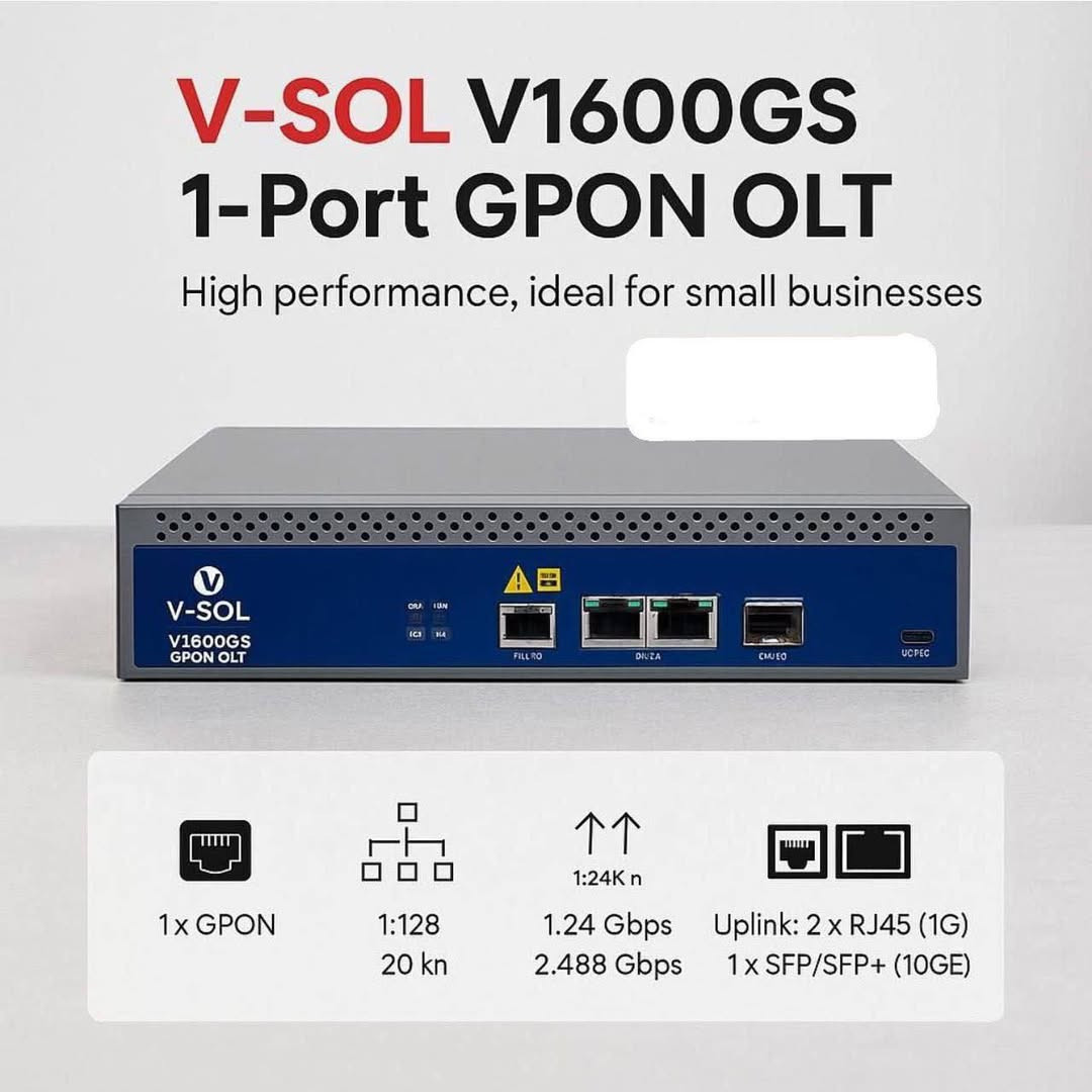 🎁هدية مع كل طلب🎁🎁 📡 V-SOL V1600GS – قوة وأداء في جهاز واحد 1PON GPON OLT 🟫بسعر............. 400.000 إذا كنت تبحث عن حل موثوق للشبكات الضوئية، فإن V-SOL V1600GS GPON OLT هو الخيار المثالي، يجمع بين الأداء العالي والتصميم المدمج ليلبي احتياجات مزودي خدمة الإنترنت والشركات الصغيرة والمتوسطة. ⸻ 🔹 أهم المزايا: 1. منفذ GPON واحد مع قدرة l تصل إلى 128 يوزر لتوصيل عدد كبير من المشتركين بكفاءة. 2. سرعات اتصال فائقة: • سرعة رفع: 1.244 Gbps • سرعة تنزيل: 2.488 Gbps 3. مدى تغطية طويل يصل إلى 20 كم لضمان وصول الخدمة إلى أبعد النقاط. 4. منافذ Uplink متعددة: • 2× RJ45 بسرعة 1G • 1× SFP/SFP+ بسرعة 10GE 5. تصميم مدمج وموفر للطاقة مع أداء مستقر حتى في بيئات العمل المستمرة. ⸻ ⚡ لماذا تختار V-SOL V1600GS؟ • موثوقية عالية وأداء مستقر. • مواصفات تلبي متطلبات السوق. • حل اقتصادي مع جودة تصنيع ممتازة. 💼 الخيار الأمثل لتوسيع شبكتك وتحقيق أداء متميز لمشتركيك. **إذا كنت صاحب هذا الإعلان وتريد حذفه لأي سبب، رجاءا أرسل رسالة إلى الدعم الفني**