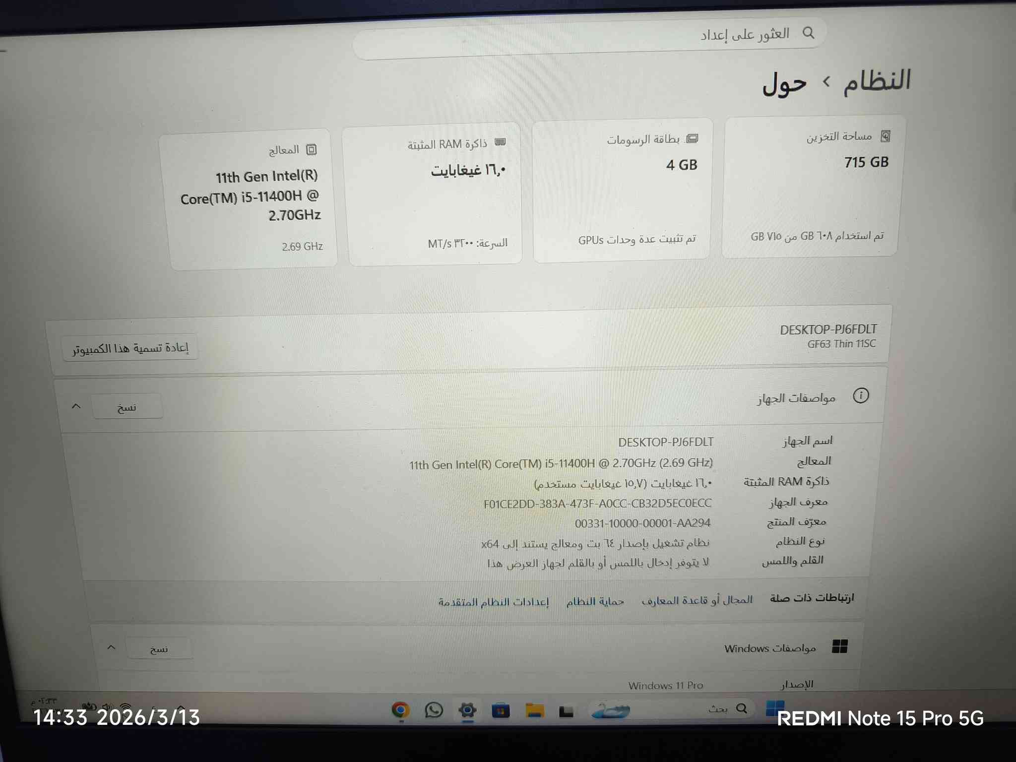 msi gf63اخو جديد استخدام قليل متعاجز اصور 😂 الشراي يجي اصورله ويدلل i5 11جيل هارد 512 nvme رام 16 ddr4 كرت شاشة gtx 1650 موجود كارتونه مع شاحن فقط **إذا كنت صاحب هذا الإعلان وتريد حذفه لأي سبب، رجاءا أرسل رسالة إلى الدعم الفني**