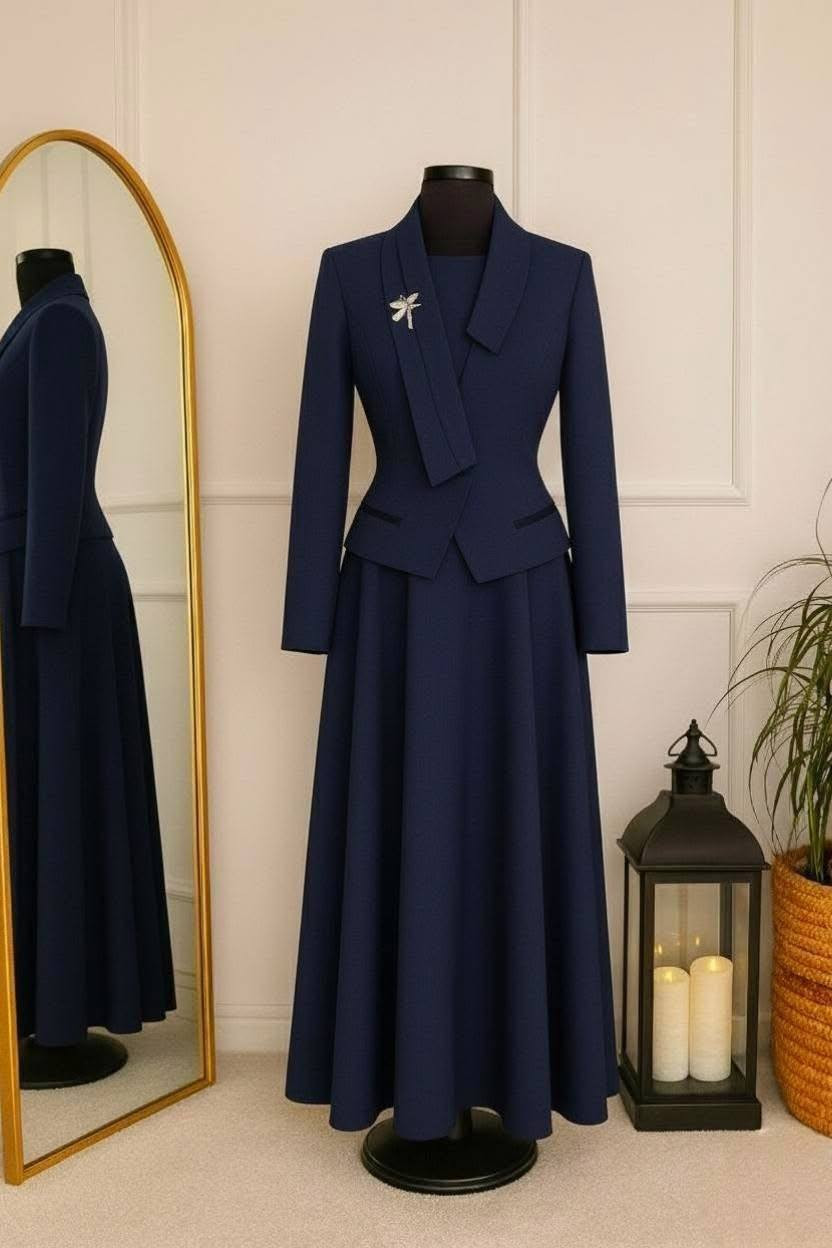 طقم فستان بنطرون • قماش دابل • مقاسات ٣٨-٥٢