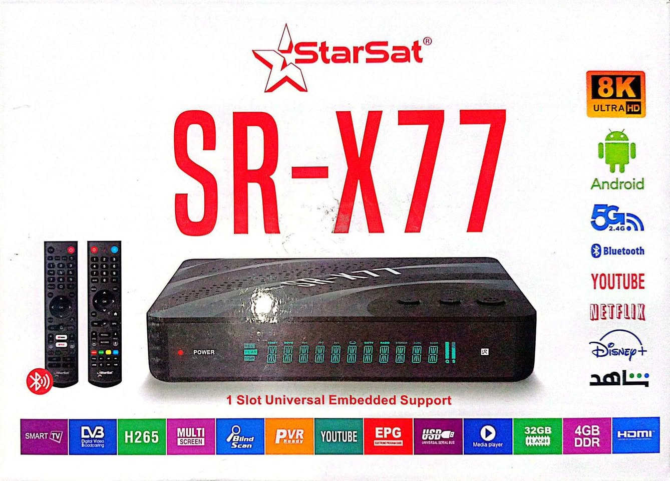 السلام عليكم للبيع جهاز ستار سات x77 السعر 140 رسيفر ستار سات SR-X77 8K هو جهاز ترفيهي بنظام أندرويد 9، يتميز بمعالج Amlogic S905X3 القوي، رامات 4 جيجا، وذاكرة تخزين 32 جيجا. يدعم جودة صورة 8K الحقيقية، وشيرنج Forever Pro لمدة 15 شهراً، وسيرفر Apollo IPTV، بالإضافة إلى بلوتوث وWi-Fi مدمج، مما يجعله خياراً ممتازاً للمشاهدة الذكية فائقة الدقة. المواصفات الفنية التفصيلية لستار سات X77 (8K/4K): المعالج: معالج قوي من نوع Amlogic S905X3. الذاكرة (RAM): 4 جيجا بايت DDR. ذاكرة التخزين (ROM): 32 جيجا بايت. نظام التشغيل: أندرويد 9.0 (Android 9 Pie). جودة الصورة: دعم حقيقي لجودة 8K، بالإضافة إلى 4K، HDR، HLG، وWCG. سيرفرات الشيرنج: مزود بسيرفر فوريفر برو (Forever Pro) لمدة 15 شهراً. سيرفرات IPTV: مزود بسيرفر أبولو (Apollo IPTV) لمدة 12-15 شهراً. الشبكات: يدعم واي فاي (Wi-Fi) داخلي، وشبكات 4G و 5G. المميزات الصوتية: دعم صوت دولبي (Dolby). المدخلات والمخرجات: يدعم مدخل صوت أوبتكال (Optical). ميزات أخرى: يدعم تشغيل صورة داخل صورة (PIP)، وتطبيق Biss Auto لجلب الشفرات تلقائياً. عالم الستلايت عالم الستلايت +1 مميزات إضافية: يفتح الباقات الرياضية والترفيهية الشهيرة (مثل الباقة البنفسجية بإضافة كود VIP). يدعم تثبيت تطبيقات الأندرويد مثل شاهد، نتفليكس، وديزني بلس. تحديث أول استخدام: ينصح بعمل تحديث للرسيفر عند أول استخدام عبر USB وضبط مصنع. عالم الستلايت عالم الستلايت +1 ستار_سات_x77_8k رسيفر ستارسات X77 فوركيه اندرويد9 4k املوجيك ... ١٣/٠٧/٢٠٢٥ — 📢متوفر📢دفعة جديدة📢 من ✅ريسيفر،#ستار_سات_x77_8k رسيفر ستارسات X77 فوركيه اندرويد9 4k املوجيك✅✅✅✅✅✅ مواصفات جهاز SR X77 الجديد الكاملة :- – المعالج : Amlogic S... **إذا كنت صاحب هذا الإعلان وتريد حذفه لأي سبب، رجاءا أرسل رسالة إلى الدعم الفني**