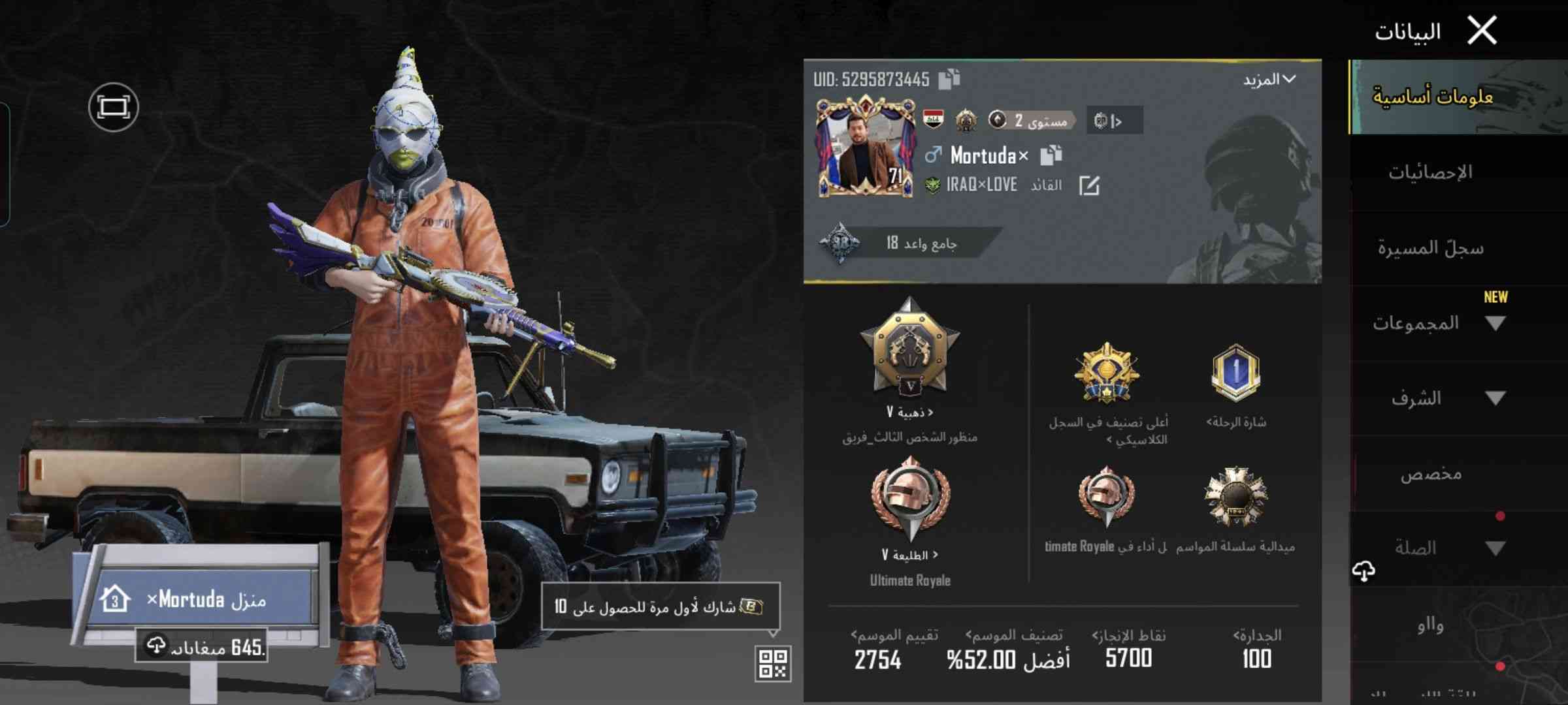 حساب ببجي • مستوى ٨٠ • سلاحين