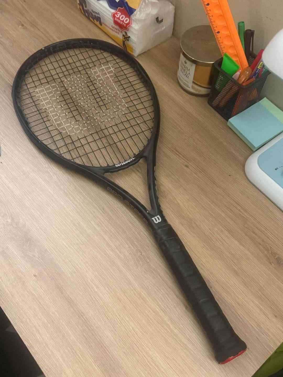 اصلي Wilson Pro Stafمضرب تنس من شركه • حجم رأس المضرب: 97 بوصة مربعة (حوالي 626 سم²).  • الطول: 27 إنش (68.6 سم).  • الوزن مع الخيوط: حوالي 330 غرام.  • توازن المضرب: خفيف من جهة الرأس (Head-Light) حوالي 7 نقاط.  • نمط الخيوط: 16 × 19.  • صلابة الإطار: 66 RA تقريبًا.  • عرض الإطار: 21.5 مم.  • مواد التصنيع: جرافيت مضفور مع ألياف أراميد/كيفلار. قيم بما يرضى الله. للبيع **إذا كنت صاحب هذا الإعلان وتريد حذفه لأي سبب، رجاءا أرسل رسالة إلى الدعم الفني**