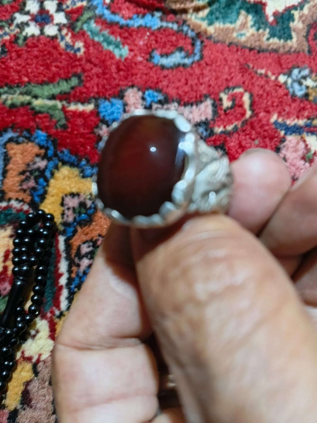 عقيق يماني • منقوش يدوي • فضة قياس٢١