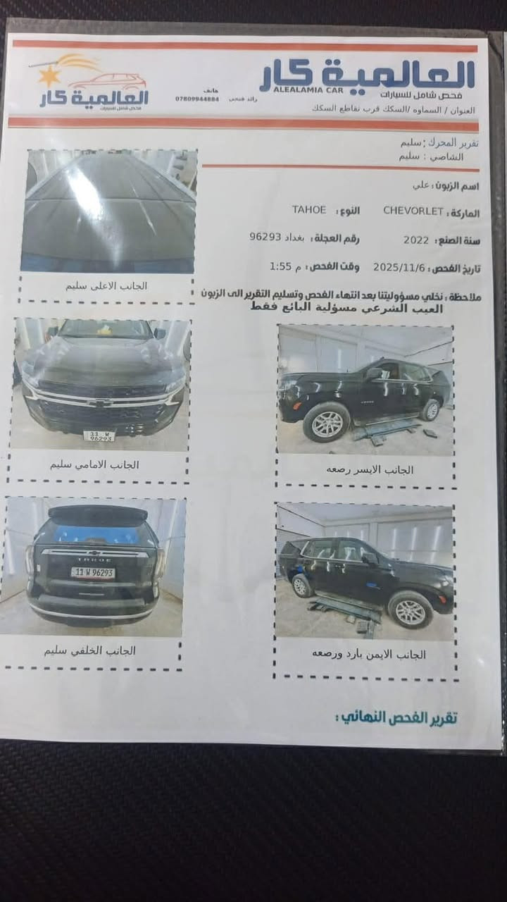 سلام عليكم احبتي للبيع شوفر ليت تاهو مديل 2022 سيارة كفالة عامةرقم بغداد وسونار للسيارة موضح للتاكيد وفيديو موضح للسيارة السعر 450 مكان السيارة سماوة - الرميثة للعلم اخوان مكلف بالنشر رقم الهاتف *********** مكلف بالنشر 🫡 مكلف بالنشر 🫡