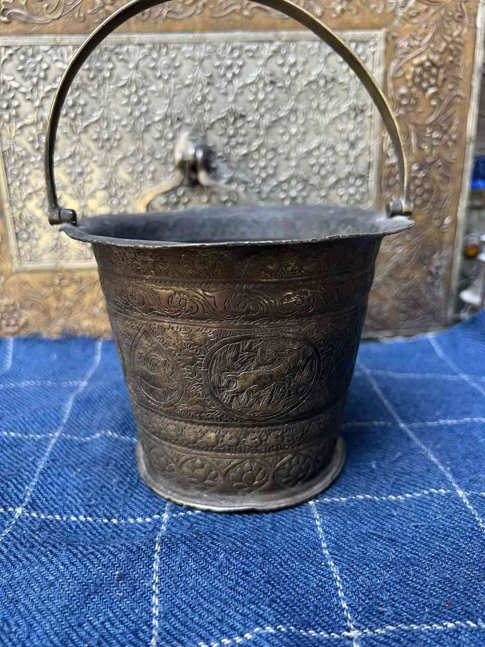 دلو نحاس احمر قديم نقش يدوي مختوم ايضا ارتفاع 18 سم واتساب ***********