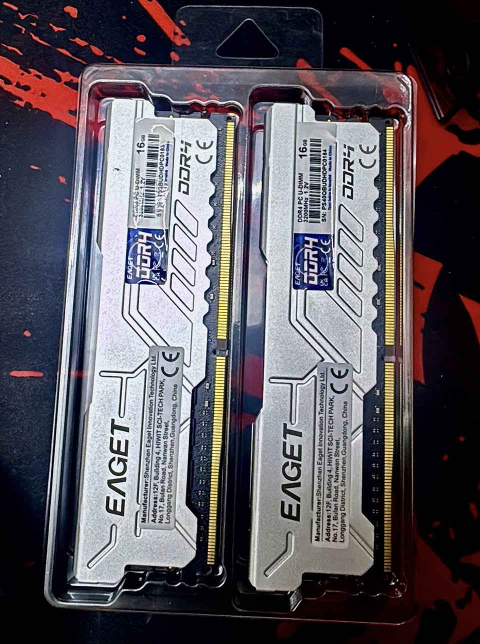 EAGET RAM 32GB (16*2) 3200MHz رامات مستعملة فحص تشغيل و ضميتهم و نظافة 100% ( قيم ب الي يرضي الله و بالعافية عليك ) ما احدد سعر لان ماعرف سوگ حالياً🙏🙏 اشتريت اعلى ف اريد ابيعهم النوع: EAGET Desktop UDIMM السعة: 32GB (قطعتين × 16GB) السرعة: 3200MHz التقنية: DDR4 الفولتية: 1.2V التوافق: تعمل على جميع لوحات DDR4 للـ PC (Intel & AMD) الحالة: مستعملة فحص فقط / غير مركّبة اللون: فضي مع هيكل معدني للأداء والثبات المميزات: • 🔥 مشتت حراري معدني لتبريد أفضل وثبات بالأداء أثناء الألعاب والبرامج الثقيلة • ⚡ سرعة 3200MHz مناسبة للگيمينگ والتصميم والمونتاج • 🧠 شرائح عالية الجودة • 🎯 أداء ممتاز وزمن استجابة منخفض (Low Latency) • 🔄 توافق واسع مع أغلب اللوحات والمعالج ✅✅ **إذا كنت صاحب هذا الإعلان وتريد حذفه لأي سبب، رجاءا أرسل رسالة إلى الدعم الفني**
