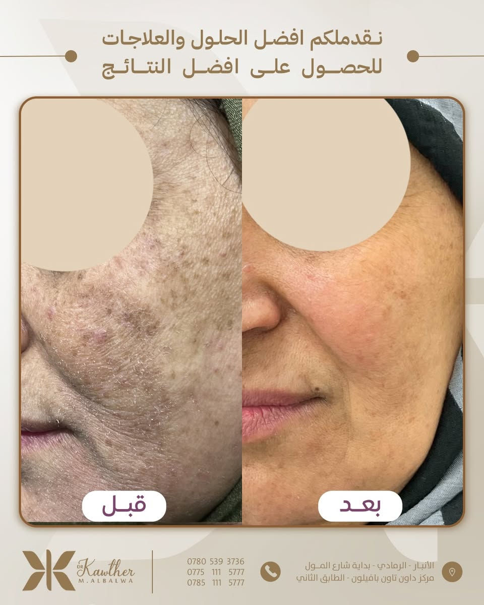 معالجة العديد من الحالات الجلدية ♥️ نحرص دائماً على تقديم رعاية متكاملة وشاملة لمختلف الحالات الجلدية، باستخدام أحدث التقنيات الطبية 🤎😍 ••••• العنوان📍: الأنبـار - الرمادي - بداية شارع المــول - مركز داون تاون بافيلون - الطابق الثاني 📱 للحجز والاستفسار الأتصال على: 📞 *********** 📞 *********** 📞 *********** #عيادة_الدكتورة_كوثر_البلوة #جلدية #تجميل #ليزر