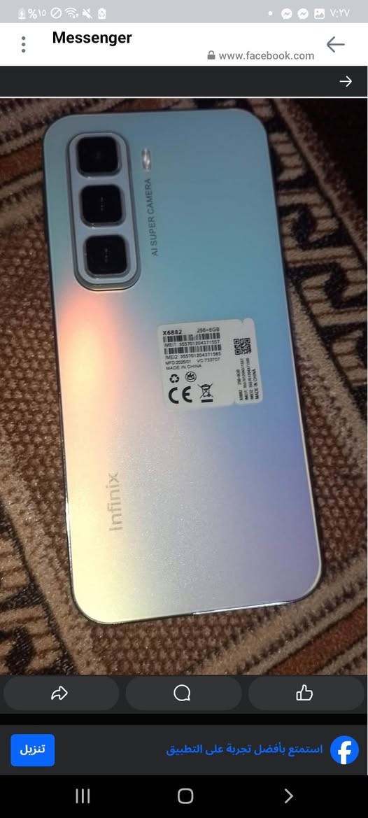 موبايل lnfinx Hot 50 ذاكرة 256GB عشوائية 16GB كارتونه والشاحنة معاه مكاني الايمن قرب مول الشام السعر 130وبي مجال الجهاز بعده بلكرتون صار يومين من اخذته **إذا كنت صاحب هذا الإعلان وتريد حذفه لأي سبب، رجاءا أرسل رسالة إلى الدعم الفني**