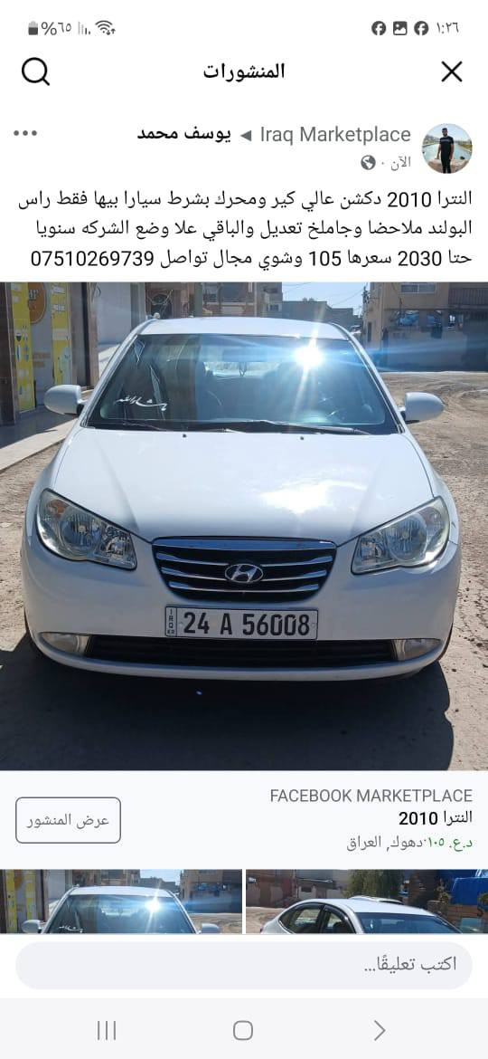 النترا 2010 دكشن عالي كير ومحرك بشرط سيارا بيها فقط راس البولند ملاحضا وجاملخ تعديل والباقي علا وضع الشركه سنويا حتا 2030 سعرها 105 وشوي مجال تواصل *********** اكر, نينوى