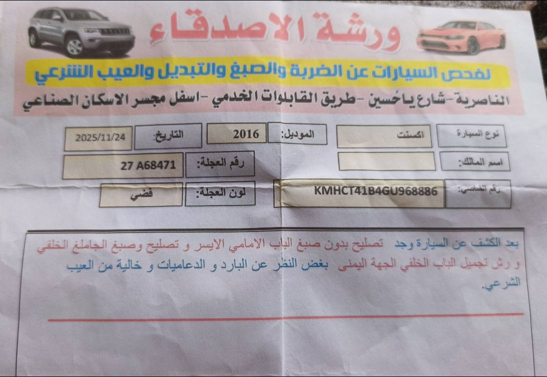 اسلام عليكم للبيع: هيونداي أكسنت بحالة ممتازة 🔥 الموديل: ( 2016 ) اللون: ( سلفري ) الكير: (أوتوماتيك) المحرك: اقتصادي 1400 الحالة: نظيفة جداً / بدون حوادث / فقط بارد خليجي الاتصال ***********