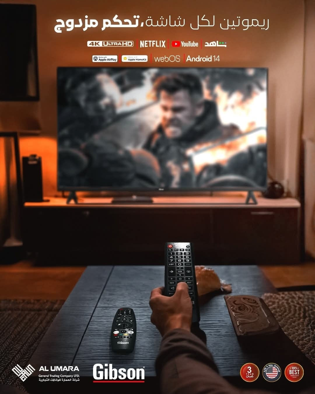 نقدم لكم شاشات جبسون الذكية بجهازين تحكم، وتصميم أنيق بإطار رفيع. - متوفرة بأحجام تبدأ من 32 إنج حتى 75 إنج. - أنظمة تشغيل متطورة: Android 14 و WebOS المعتمد عالمياً. - جهازين تحكم (ذكي مزود بـ Air Mouse، واعتيادي) - تقنية HDR. - صوت محيطي سينمائي. شاشات جبسون، تكنولوجيا وتجربة ترفيه مثالية. مركز مبيعات *********** متوفر وات ساب للحجز السريع عنوان الشركة: الكرادة - تقاطع المسبح شركة العمارة للوكالات التجارية الحصري بالعراق للجمله والمفرد لماركة جبسون #شاشه_جبسون #شاشات_بلازما #شاشات_تلفاز #Gibson_Iraq #Alumara_Company