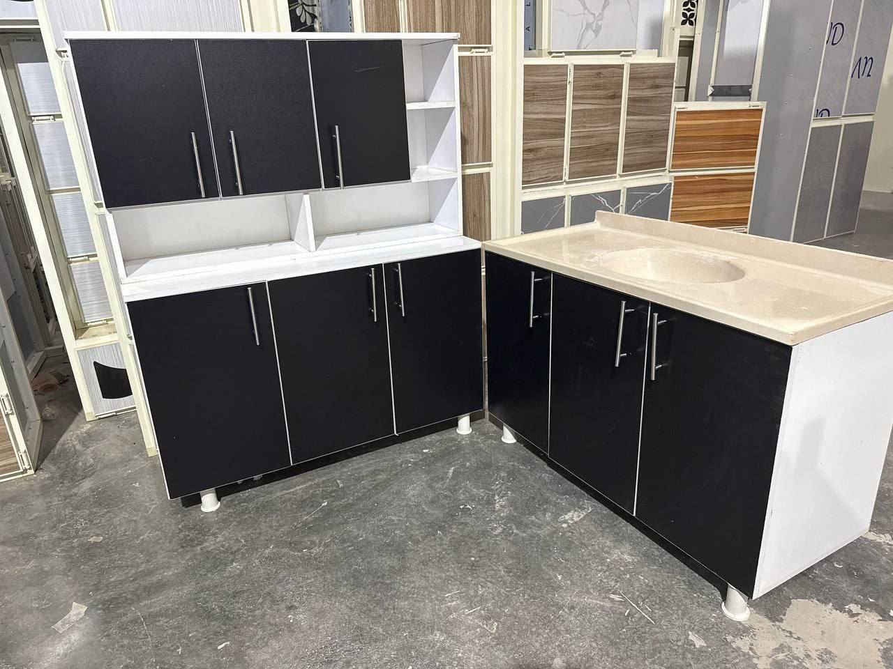 كاونتر خشب ٣قطع • سنك مرمر ١م٢٠سم • تخفيضات